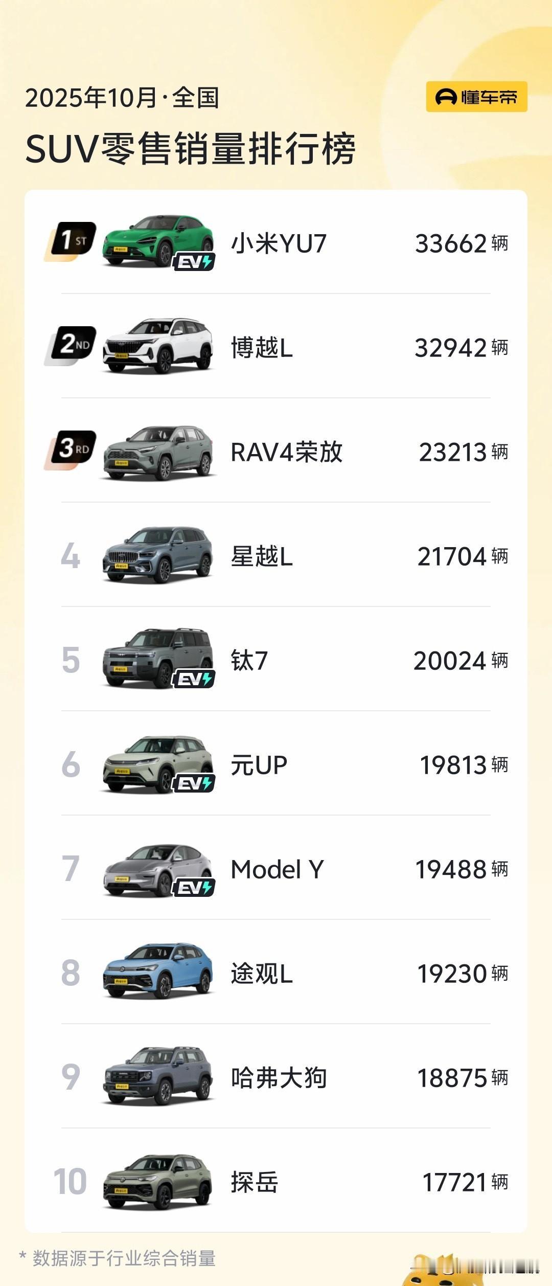 SUV销量第一,没有任何定语!官方公布10月销量40000+,中国乘联公布实际数据为48500台,虚报8500台。特斯拉首次被中国新能源超越,其他车企还在秉承着“攘外必须安内”的政策,而只有雷军和余总还在枪口对外! 条友这一周 汽车到底是插混好还是增程好? 纯电动和增程式怎么选?