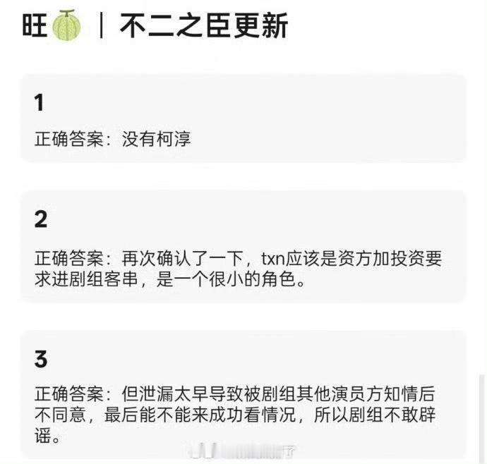 之前网传敖瑞鹏沈羽洁的 田栩宁真的是男二要进组了,还有短国top柯淳🤔 所以田栩宁是二番男二吗?这个待遇真的不错!要是真的话给同期生做配也挺尴尬的。目前新🍉资方想把田塞进去,泄露太早,被其他演员知道了不同意不知道能不能成功 豆瓣爆料田栩宁应该是资方要求进组客串,是一个很小的角色,但泄露太早,剧组其他演员知情后不同意,能不能进组看情况。现在真瓜主辟谣了,不二之臣没有田栩宁和柯淳你们更相信哪一种说法???