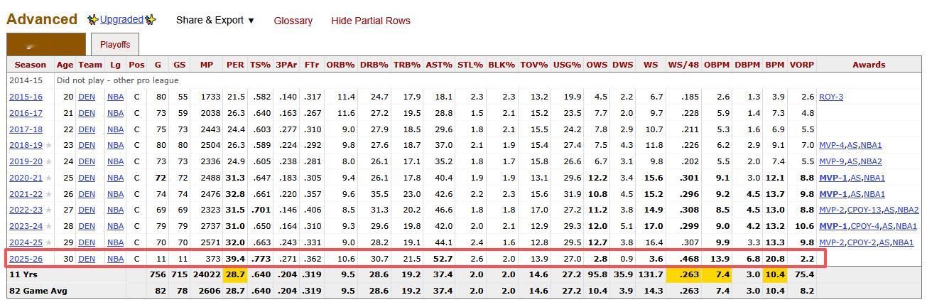 朋友们,你们记不记得当年詹姆斯打爆所有高阶数据的那个传说中的08-09赛季(图一)?敲里哇的约基奇本赛季的这几个高阶数据(图二),打爆那年的詹姆斯还带拐三个弯儿的,真踏马离谱