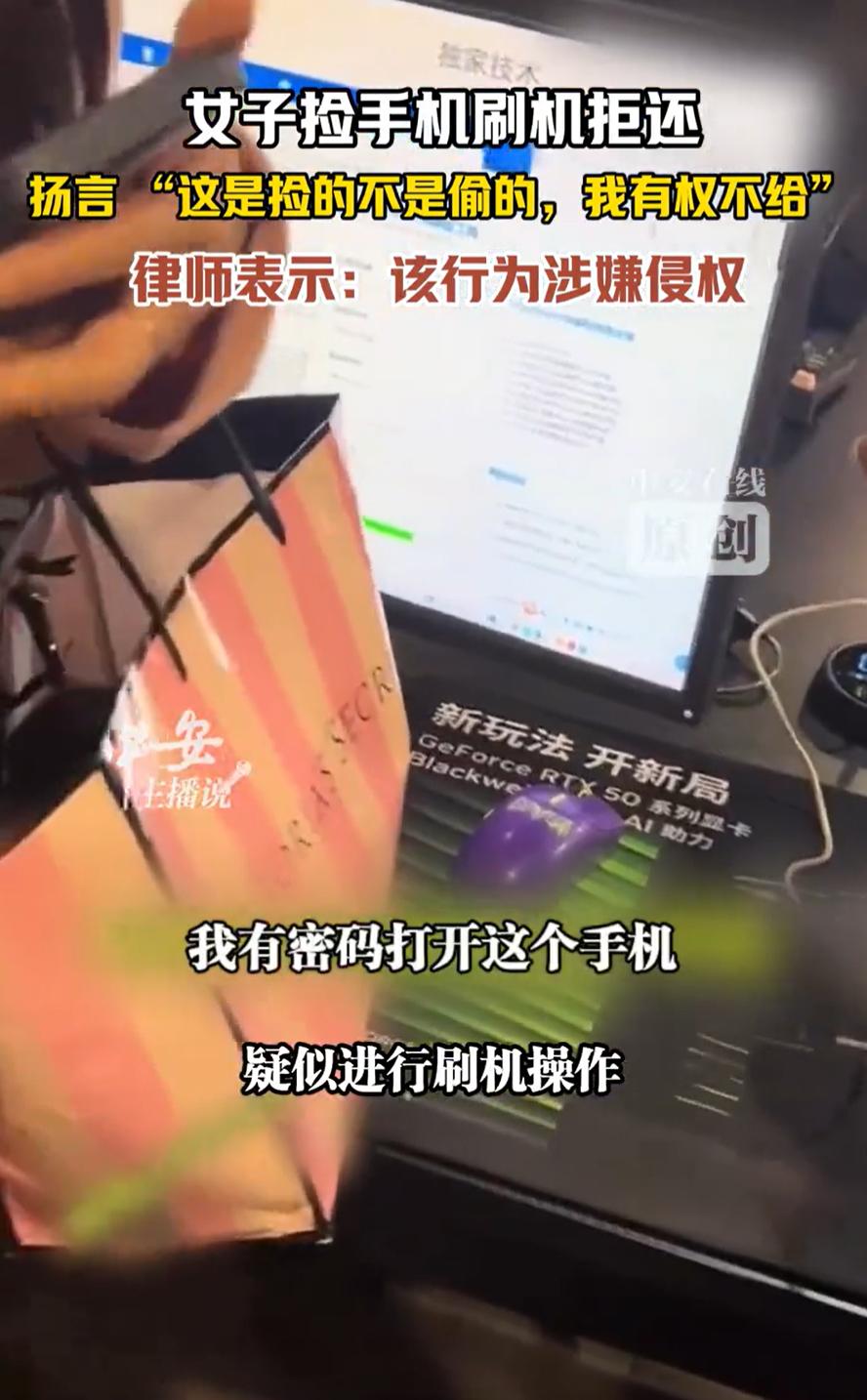 “无知者无畏!”广东广州,一失主手机不慎丢失,电话沟通后,发现被一名女子捡到,但对方却拒绝归还,报警后找到女子时,她正在网吧刷机,最离谱的是,面对民警,女子理直气壮地表示:这是我捡的,我有权不还!   11月11日,广东广州的一位市民不小心弄丢了自己的手机,这部手机里存着工作文件、家庭照片和各类重要账号,对失主来说意义非凡。   发现手机不见后,失主第一时间拨通了自己的号码,电话很快被接通,但没说上两句话就被匆匆挂断,之后再打过去,听筒里只剩下无人接听的忙音。   意识到对方可能没有归还的打算,失主没有慌乱,而是借助手机自带的定位功能,很快锁定了设备所在的大致区域,随后果断报警求助。   民警接到报警后,迅速与失主汇合,根据定位信息一路追踪,最终在一家网吧里找到了目标。   此时,一名女子正拿着失主的手机操作,看样子是在进行刷机操作,目的很明确,就是想清除手机里的原有数据,让这部手机能被自己正常使用。   失主见状,立刻上前用自己设置的密码解开了手机锁,这一举动让女子瞬间变得情绪激动。   她不仅没有丝毫愧疚,反而当场与失主发生争执,甚至突然从一旁民警的手中将手机夺了过去,嘴里还大声叫嚣着,让失主有本事就去法院起诉自己。   之后,女子还试图转移场景,提议换个地方继续争执,被失主当场点破,反问她是不是此刻才觉得丢脸。   整个过程中,女子始终坚守着自己的“逻辑”,反复强调手机是自己捡来的,又不是偷偷摸摸盗取的,所以自己有权利决定给或者不给。   从最初挂断失主的电话拒绝沟通,到面对民警调解时依旧态度强硬,再到抢夺手机的过激行为,女子的一系列操作,都暴露了她想将他人财物据为己有的主观意图。   这种将拾获物品等同于合法占有的想法,显然是对法律和公序良俗的误解。   对于这起事件中的行为性质,专业律师给出了明确的说法,该行为涉嫌侵权。   律师解释,拾得他人遗失物后,按照我国民法典的相关规定,拾得人有义务及时返还给权利人,这并不是可选项,而是必须履行的法律责任。   女子捡到手机后,不仅拒绝归还,还通过刷机的方式试图改变手机的归属状态,这种行为已经超出了单纯的不当得利范畴,更符合“以非法占有为目的,秘密窃取他人财物”的特征,已经涉嫌盗窃未遂。   拾金不昧是流传已久的传统美德,“君子爱财,取之有道”的古训也一直提醒着人们,获取财物必须通过合法正当的途径。   手机作为失主的私人财物,即便不慎遗失,其所有权也从未发生转移,拾得者没有任何权利对其进行处置。   女子之所以会做出这样的举动,说到底还是贪心作祟,误以为“没人发现就没事”,却忽略了法律的约束和良心的审视。   失主丢失财物后焦急寻找是人之常情,借助定位和警方力量找回物品的做法合理合法;   捡手机的女子或许最初只是偶然拾获,但后续的拒绝归还、刷机、抢夺等行为,已经一步步触碰了法律的红线。   在日常生活中,类似的遗失与拾获场景并不少见,处理这类事情的原则其实很简单:不属于自己的东西,不该有非分之想,拾获他人财物后主动归还,既是对他人权益的尊重,也是对自身道德底线的坚守。   法律不会因为“是捡来的”就纵容侵占他人财物的行为,公序良俗也不会容忍这种损人利己的做法,这是每个公民都应该明白的基本道理。   今天的分享到这里就结束了,大家对此事有何看法,欢迎在评论区留言和讨论,感兴趣的可以点击头像加关注,我将每日更新优质内容,我们下期见。