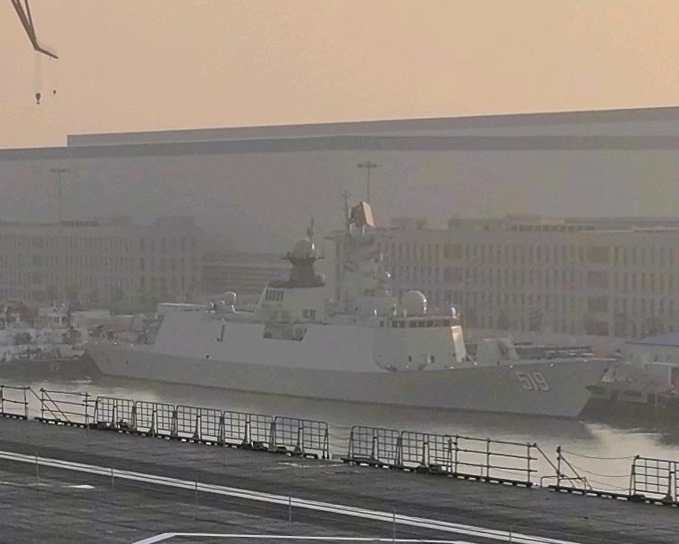 076首舰四川舰出航现场 不远处的新批次改进型054A 舷号519,恭喜哪个幸运儿?