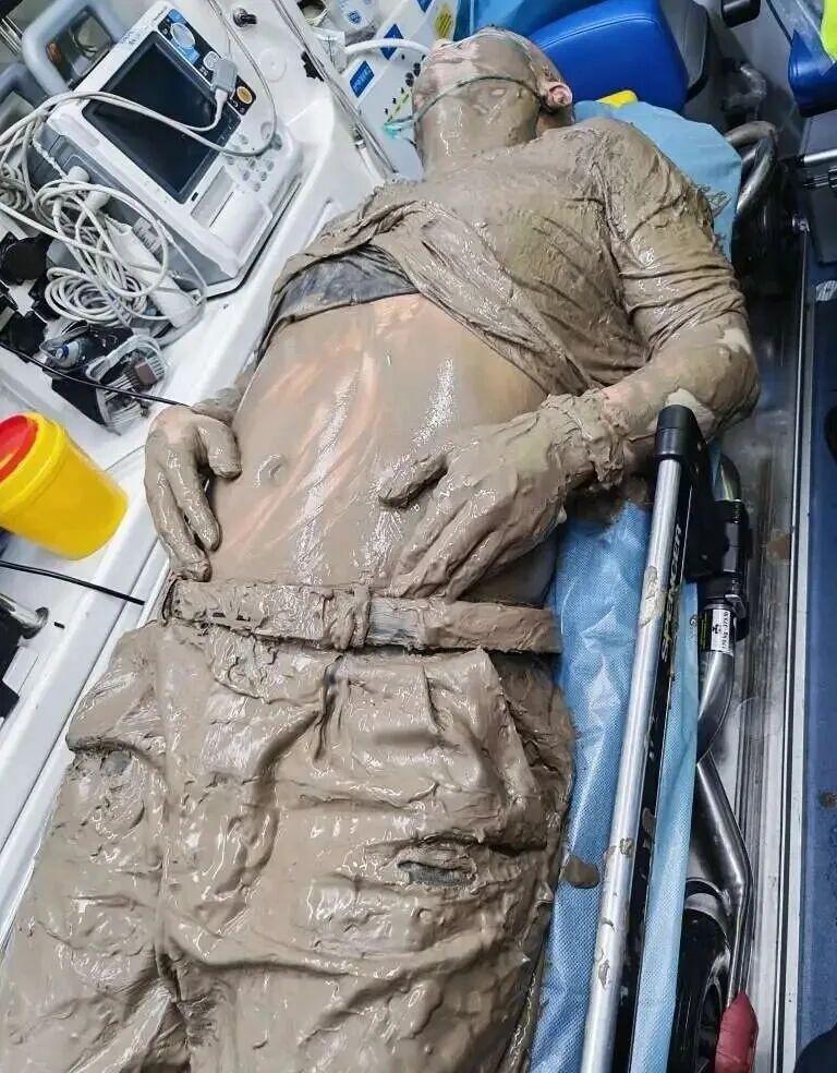 近日,宁波镇海,招宝山派出所接到报警,有人跳入了沿江路的滩涂中,民警徐云与辅警李胜利摸黑冲入泥泞甬江,用30分钟终将男子推回岸边。两人力竭晕眩,李胜利更因吸入淤泥碱中毒送医。得知被救者脱险并重拾希望,病床上的他笑了。 杭州湾南岸的初冬傍晚,夜色裹着六级北风肆虐,沿江路滩涂的淤泥在潮水中翻涌,散发出刺鼻的咸腥。   两个浑身裹满泥浆的身影正艰难挪动,他们弓着腰,合力托着一个意识模糊的男子,每一步都要耗费全身力气,泥浆已经漫过了三人的腰际。   这幕惊险场景的开端,要从当天傍晚的一通紧急报警说起。   11月7号傍晚,招宝山派出所的接警铃声急促响起,报案人语气慌张,称同伴李某饮酒后情绪崩溃,独自跑进了江边滩涂。   挂掉电话,民警徐云和辅警李胜利抓起装备就往现场赶,警灯在夜色中划出急促的弧线。   这片滩涂是出了名的“吃人泥”,这里的底泥pH值能到9.2以上,碱性极强,而且淤泥深不见底,踩进去就很难拔出来。   更要命的是,潮水正以每分钟十余米的速度往滩涂里倒灌,天已经黑透了,只能看见远处一点模糊的影子。   消防救援力量还在途中,眼看着夜色越来越浓,潮水即将淹没滩涂深处,徐云和李胜利没有半分犹豫。   两人脱掉厚重外套,借着手机微光就踏入了冰冷的淤泥,刚落脚就陷到大腿根,拔腿时连带着发出“噗嗤”的声响。   淤泥的阻力远超想象,每前进一米都要反复拔腿、迈步,李胜利的作训裤被暗藏的杂物勾破,泥浆顺着破口往裤管里钻。   就在这时,他脚下碰到一个柔软的物体,低头用手一探,竟是一个人的裤腿,正是已经陷入半昏迷的李某。   李某这时候已经失去了理智,嘴里嘟囔着听不懂的话,还在拼命挣扎,徐云知道,硬拉肯定不行,说不定还会把两个人都拖进更深的淤泥里。   他突然想起李某是本地人,就用本地话喊了一句:“兄弟,家里腌的蟹糊是不是还没开坛?”这句话让李某的动作顿了顿,挣扎的力气小了些。   后来他们才知道,李某是因为创业失败欠了八十万,觉得没脸见人,手机里还存着给前妻的遗书。   见李某情绪稳定,徐云立刻从身后托住他的腋下,李胜利则在侧面扶住其腰腹,两人形成稳固的支撑。   为了保持动作同步,他们默契地用节奏发力,每数一个数就同时抬脚往前送。   泥浆的重量让三人的身体变得异常沉重,徐云的额角青筋暴起,李胜利的呼吸越来越急促,泥浆溅满了他们的脸,只有眼睛还能看出转动的方向。   这样的艰难跋涉持续了半个钟头,远处终于出现了消防救援车的探照灯光柱。   此时潮水已经漫到三人胸口,徐云的手指因为长时间用力和寒冷,僵硬得无法弯曲,想拿出急救包却怎么也打不开。   李胜利突然一阵剧烈咳嗽,吐出来的东西带着黑褐色的泥浆,显然是吸入了过多碱性淤泥,脸色瞬间变得苍白。   在消防队员的接应下,三人终于抵达岸边,刚把李某移交出去,徐云和李胜利就双腿一软,差点瘫倒在地。   两人胸口发闷,眼前阵阵发黑,长时间陷在淤泥里的双腿已经失去知觉。   同事们赶紧上前搀扶,这时才发现他们的衣裤已经和泥浆冻在了一起,李胜利的嘴唇因为中毒有些发紫,被紧急送往镇海区人民医院。   在医院接受治疗时,李胜利最关心的还是被救男子的情况。   当同事带来消息,说李某清醒后已经放弃了轻生的想法,还托人转达感谢时,这位浑身是伤的辅警露出了笑容。   面对医护人员的夸赞,他只是简单地说,这是自己分内该做的事,换成其他同事也会这么做。   这场救援的经过被传到网上后,引发了不少人的关注,大家看着两人满身泥泞的照片,纷纷为他们的勇敢点赞。   在基层,这样的场景并不罕见,民辅警们总是在危险来临的时候挺身而出。他   们没有超能力,只是在关键时刻选择了责任与担当,用自己的安危换取他人的平安,这一身泥泞,恰是最耀眼的勋章。