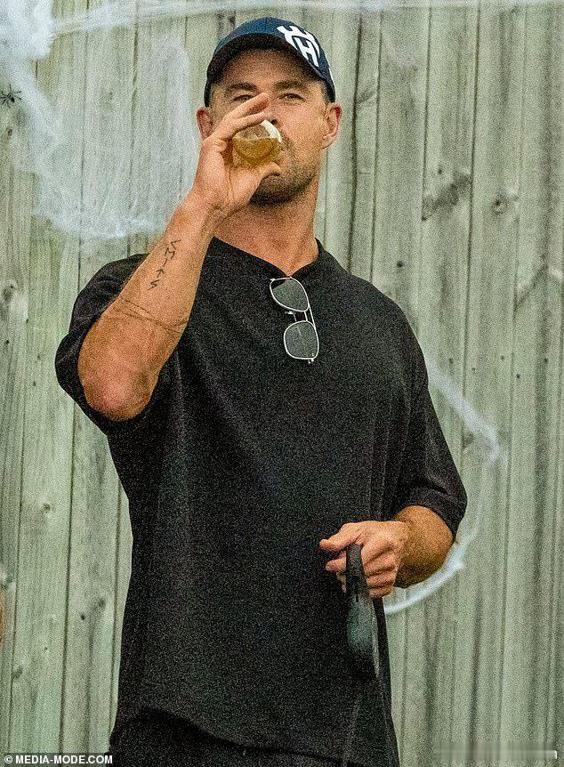 克里斯海姆斯沃斯月初在拜伦湾一后院里参加派对,和弟弟Liam等朋友喝酒小聚