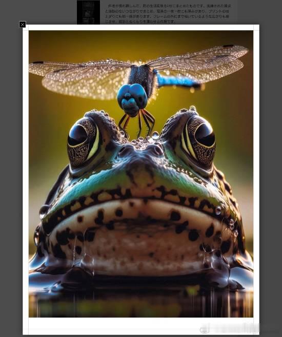 日本摄影赛一等奖被发现是AI生成:主办方紧急撤销其资格近日日本一摄影沙龙爆出乌龙丑闻:获得一等奖的作品是AI生成。主办单位原本将一等奖颁给一张名为《这是我的头啊!》(俺の頭だぞ!)的摄影作品,画面捕捉到蜻蜓轻巧停在青蛙头上的逗趣瞬间,被评审盛赞为“兼具不可思议魅力与亲切感的佳作”。原评审认为该作“以确凿的摄影技术与巧妙构图展现自然奇迹”,于是从743件参赛作品中脱颖而出,并于9月刊登在《朝日新闻》埼玉版及埼玉县立近代美术馆展出。不久后,有网友质疑照片“看起来像是免费AI生成图像”,甚至有人在图库网站Dreamstime以关键字搜到几乎相同、带有免版权AI生成水印的图片。东窗事发后,获奖者事后坦承作品并非亲自拍摄,而是AI生成图像,主办方已于8日紧急撤销其资格。主办单位表示,取消授奖的原因是得奖者投稿了非本人创作的作品,并强调今后将研拟AI图像参赛的相关规范,以防止类似争议重演。
