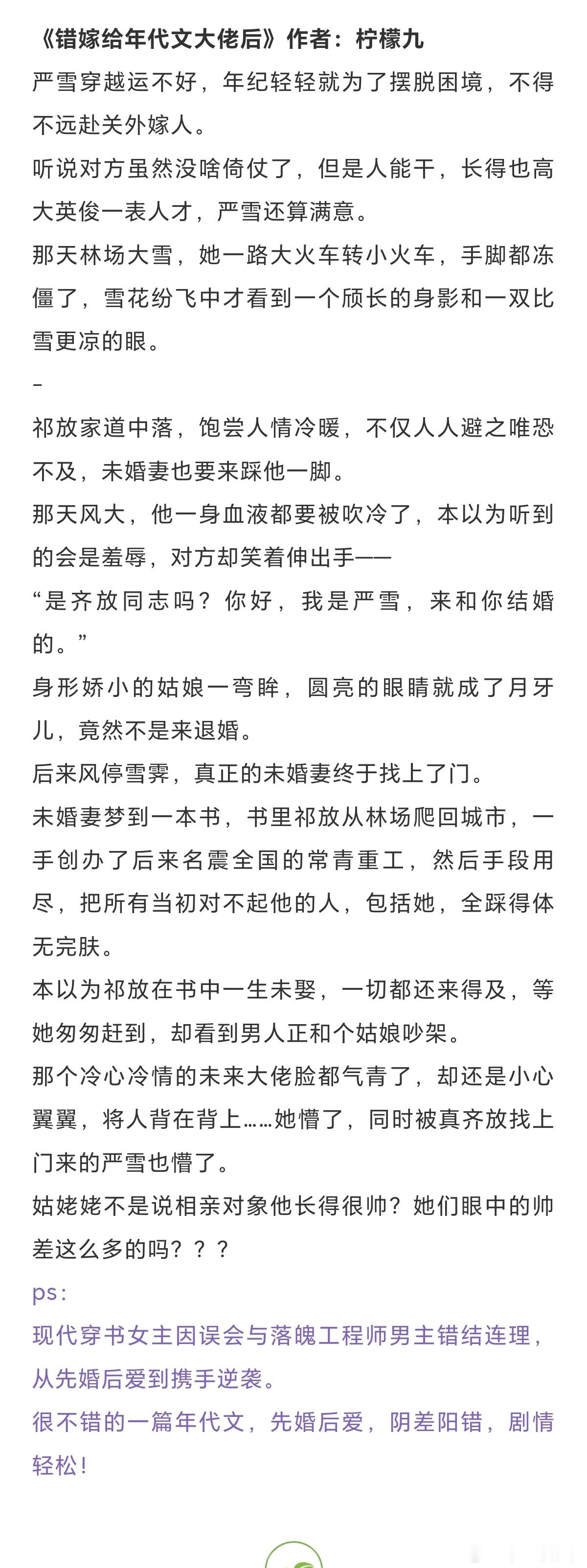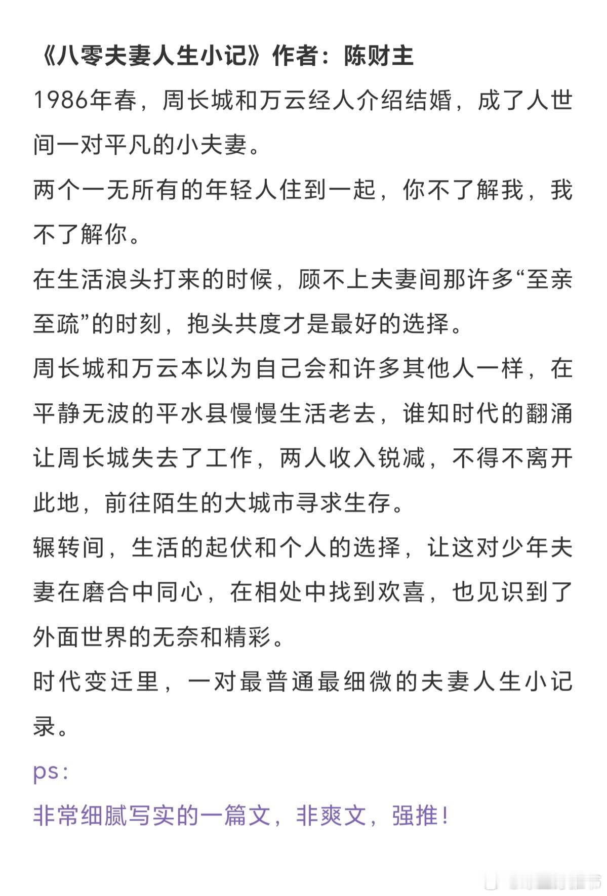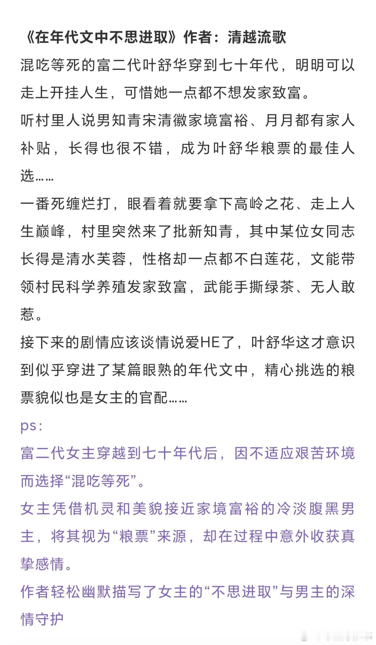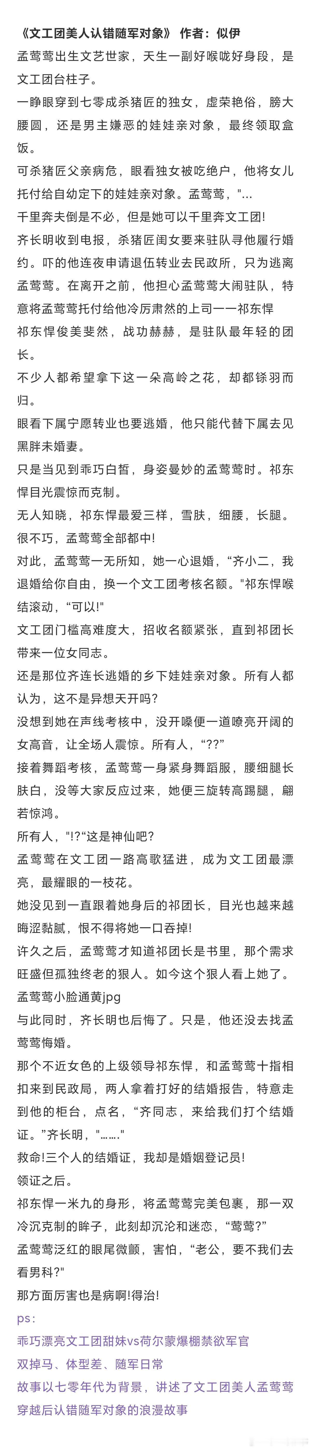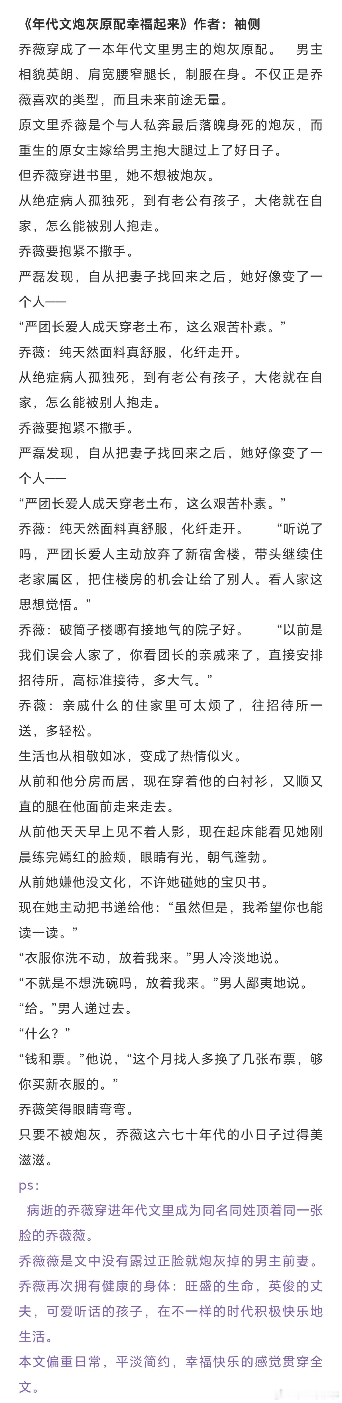 十本高分年代文:生活也从相敬如冰,变成了热情似火。《军工大院女儿奴》作者: 浣若君《八零夫妻人生小记》作者:陈财主《文工团美人认错随军对象》 作者:似伊《错嫁给年代文大佬后》作者:柠檬九《在年代文中不思进取》作者:清越流歌《换亲姐姐重生了[八零]》作者:红叶似火《我这尴尬的重生》作者:刀尔《年代文炮灰原配幸福起来》作者:袖侧《七十年代真夫妻》作者:东边月亮圆《重生七零过好日子》作者:雾矢翊