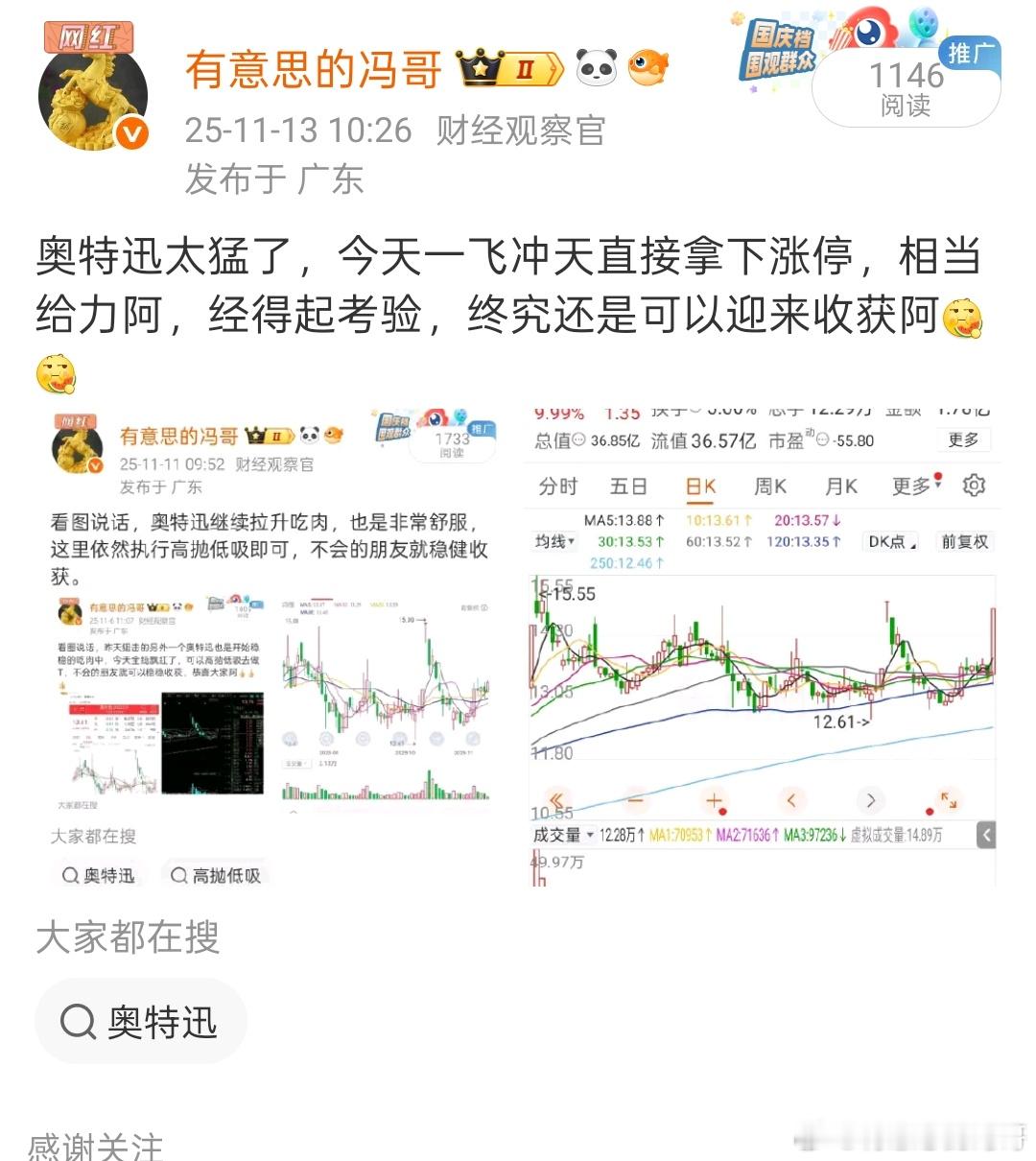 看图说话,奥特迅继续连板,非常的给力阿,恭喜大家了,可以美滋滋过周末了