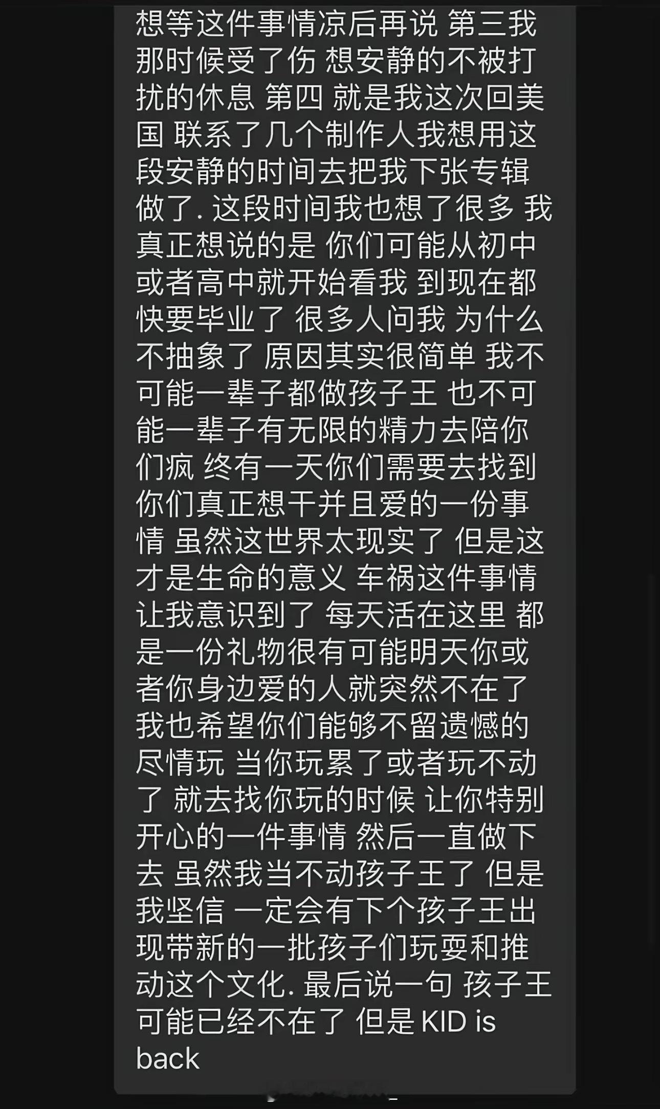 前段时间去世的孩子王复活了!!孩子王在粉丝群宣告复活!表示Kid is Back!