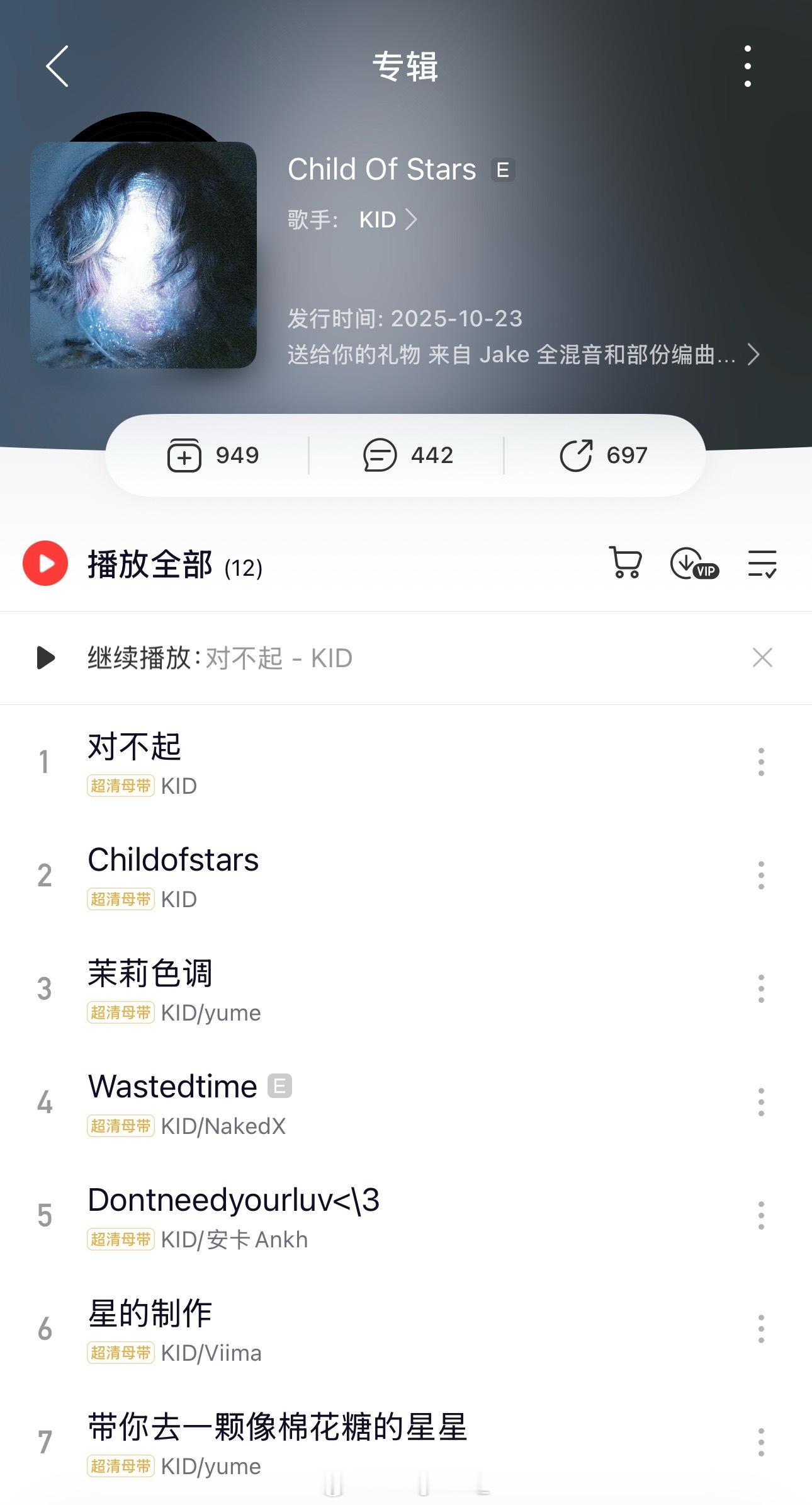孩子王在去世之后,其实还发布了一张“遗作”新专辑,只不过当时恰逢Diss大战,有点被淹没了。当时相关人员在评论区表示:这张专辑是定档明年发布的,完成了60%。但事情太突然,就联系了Kid的朋友和混音师一起商量将遗留的声音发出来,在记忆里得到永生。