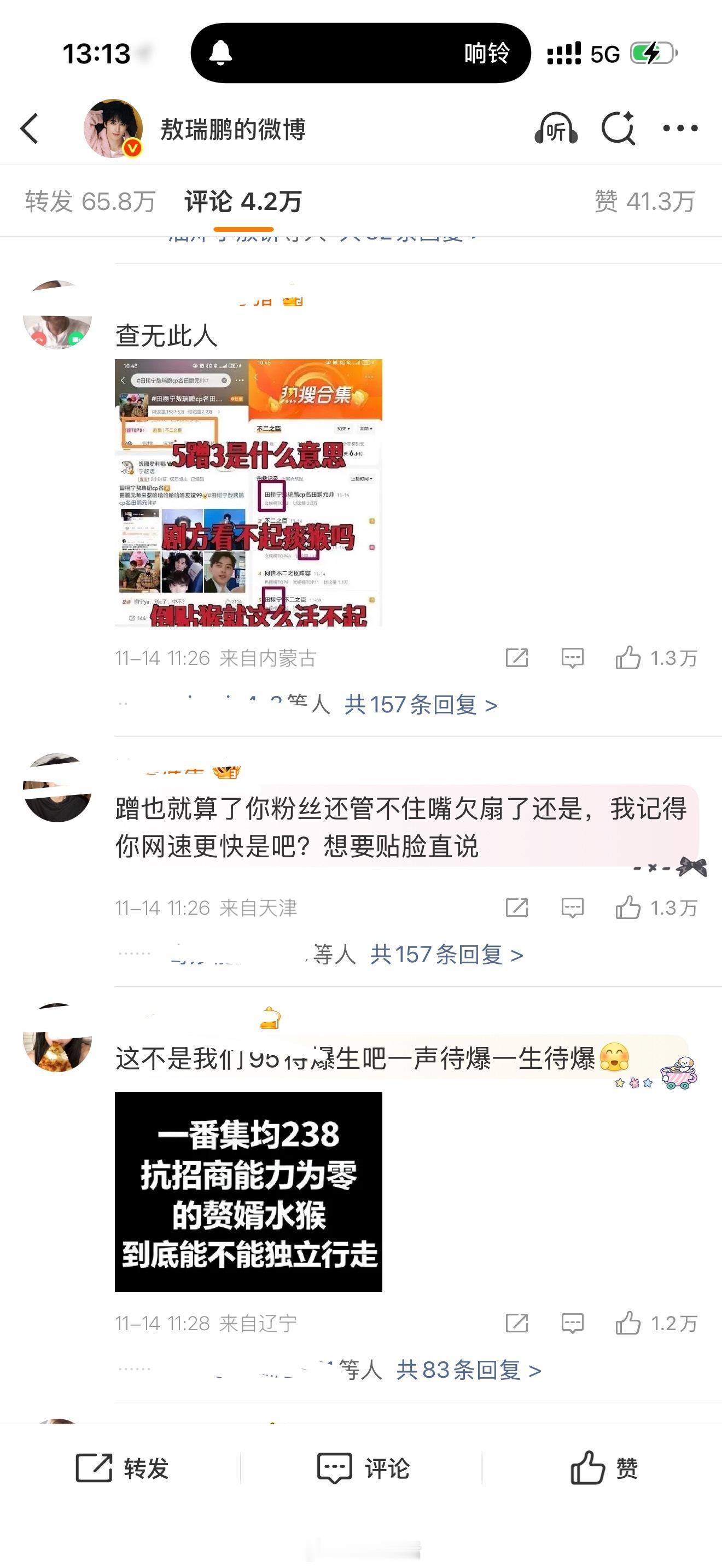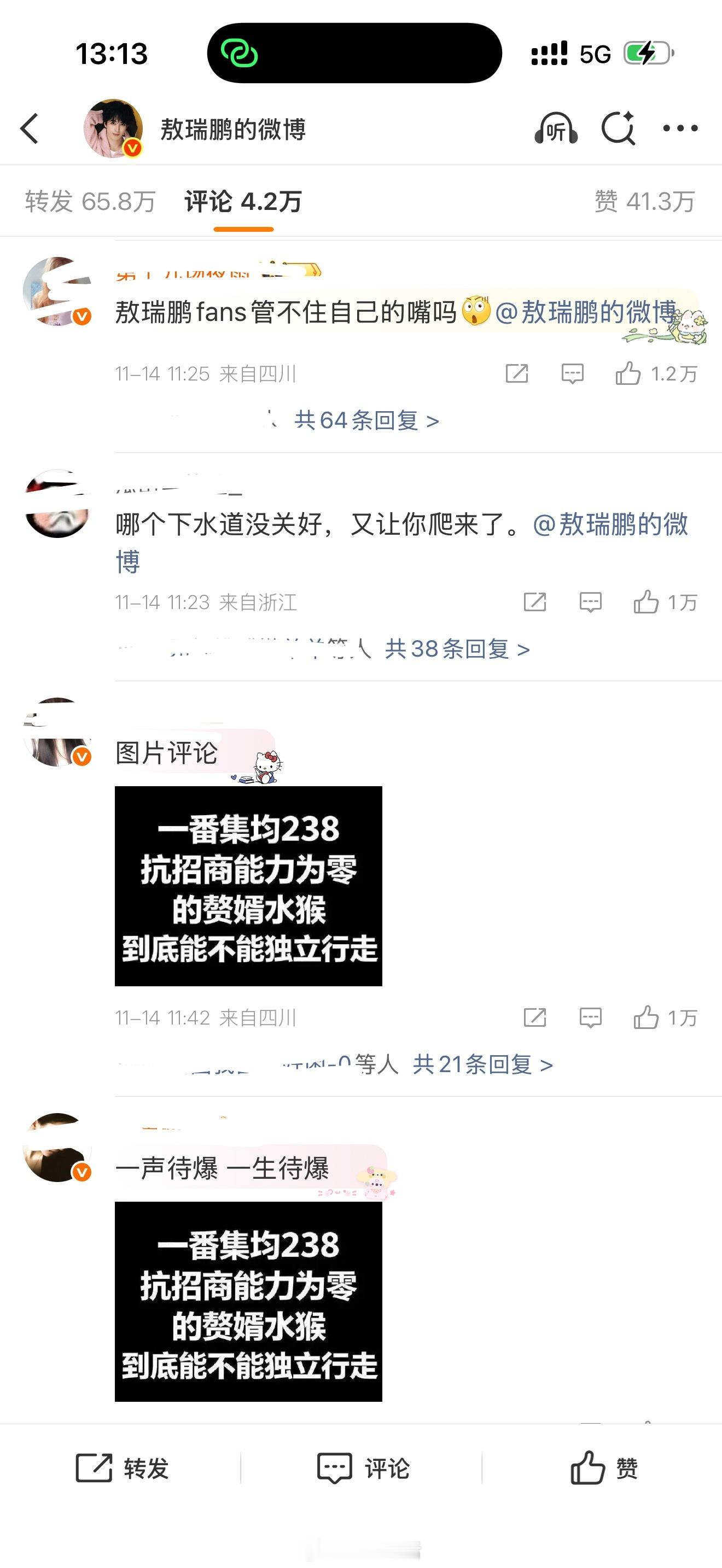 在我看来敖瑞鹏才是无妄之灾,评论区都被冲了。能不能放过敖瑞鹏。
