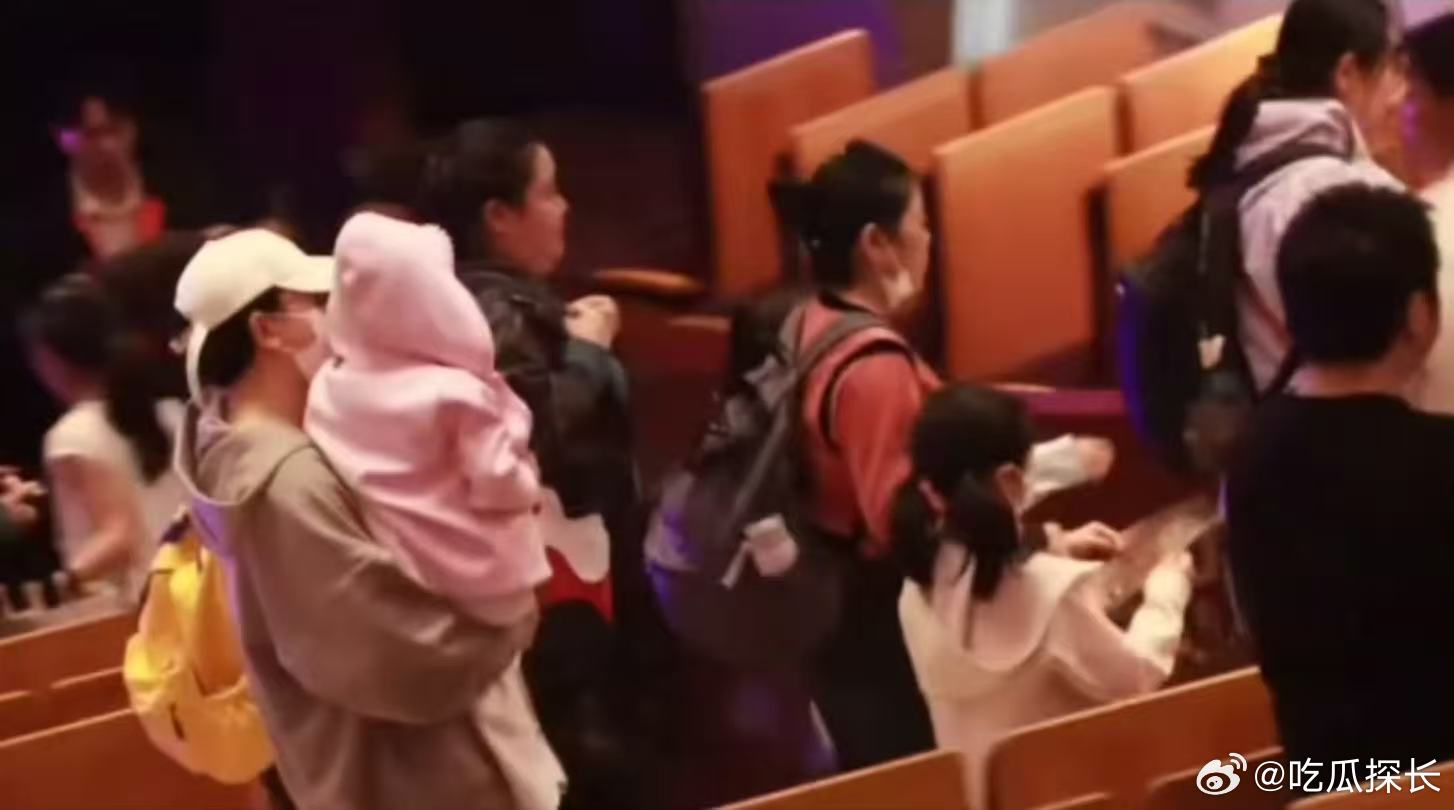 张杰带三个女儿看音乐剧,灰色外套来了哈哈哈,也想偶遇