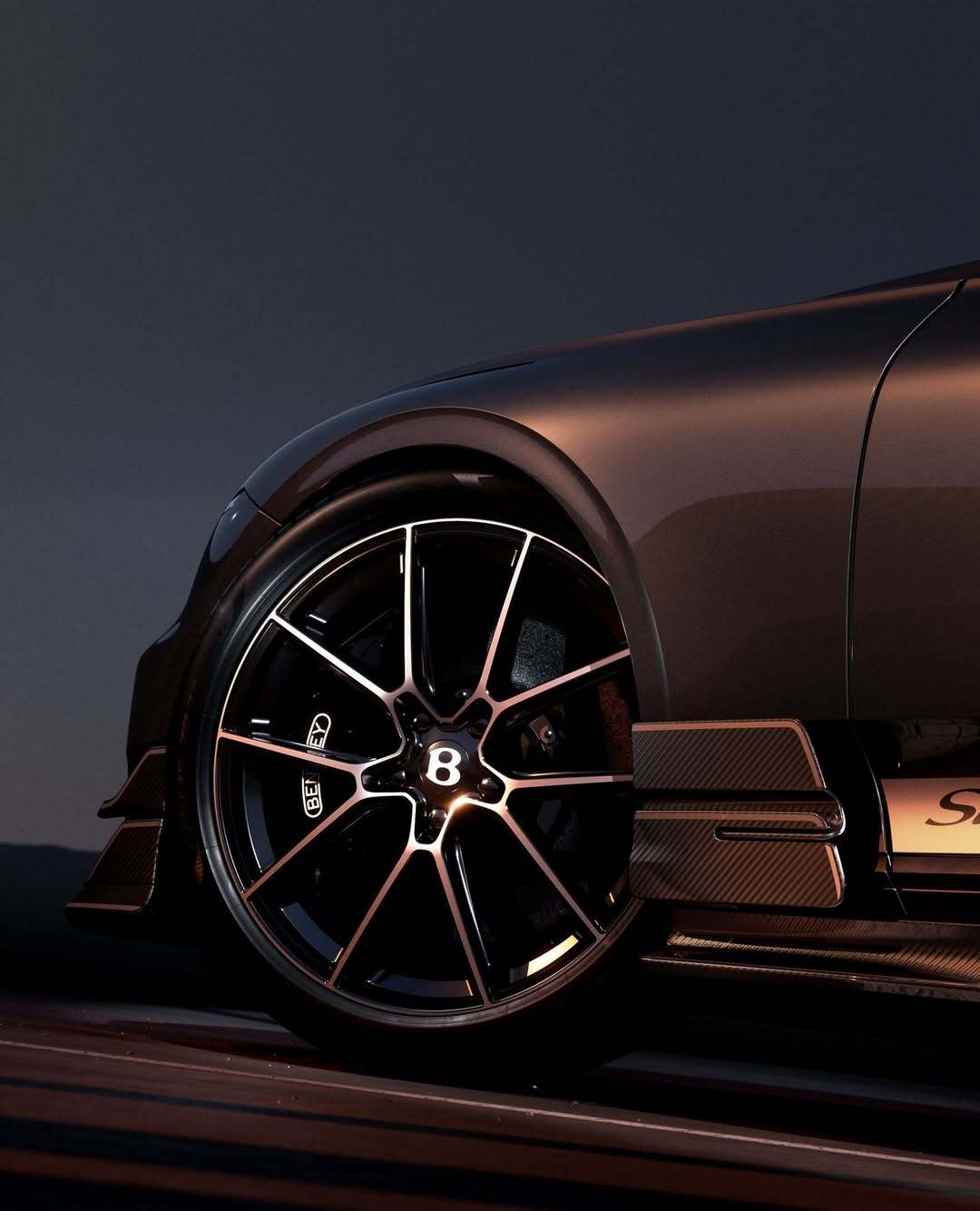 宾利欧陆GT Supersports发布~非混动后驱,重量最轻的欧陆GT(减重半吨到达2吨)强化后的4.0升双涡轮增压V8能输出657马力,800牛米,8速双离合变速箱,配备电子限滑差速器,还有扭矩矢量分配,后轮轮距加宽;22英寸锻造铝合金轮毂搭配Trofeo RS轮胎,前轮10活塞卡钳440毫米刹车盘,后轮4活塞410毫米刹车盘。限量500辆~