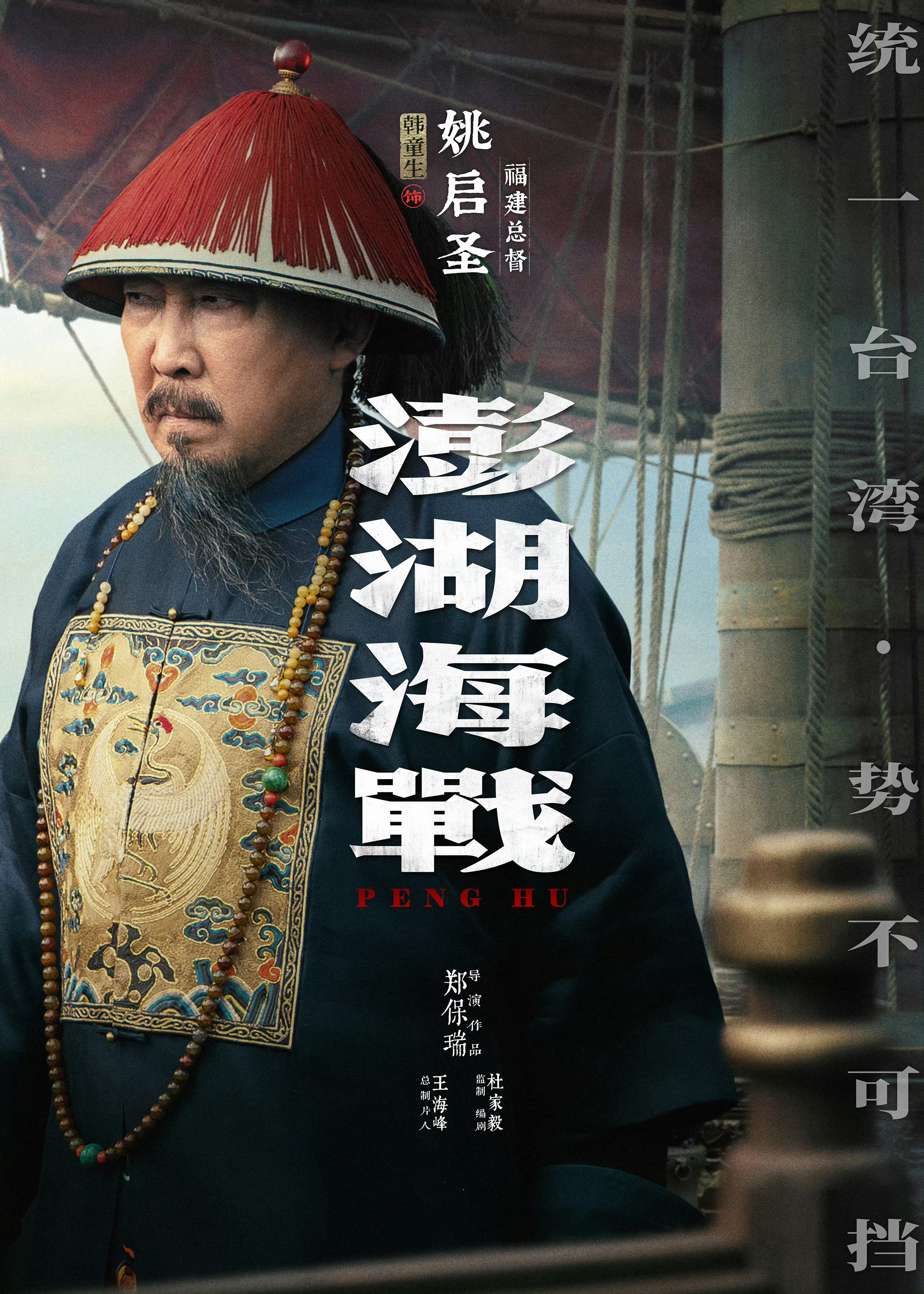 由郑保瑞执导,易烊千玺、王学圻、杜江、侯雯元、罗一舟主演的新片《澎湖海战》发布12组人物海报,并官宣新主演阵容,包括耿乐、倪大红、韩童生、胡明、马京京、王子宸、答有为。影片讲述了公元1681年,台湾权臣冯锡范刘国轩弑杀监国郑克臧,挟立12岁郑克塽为新王,冯刘集团加剧分疆裂土以武谋独进程,并长期袭扰东南沿海城镇。康熙皇帝多次派员招抚未果,于公元1683年,命福建水师提督施琅领兵平台。施琅于澎湖大败台湾水师,最终以武止戈,实现了台湾和平统一。该片将于2026年在全国院线上映。