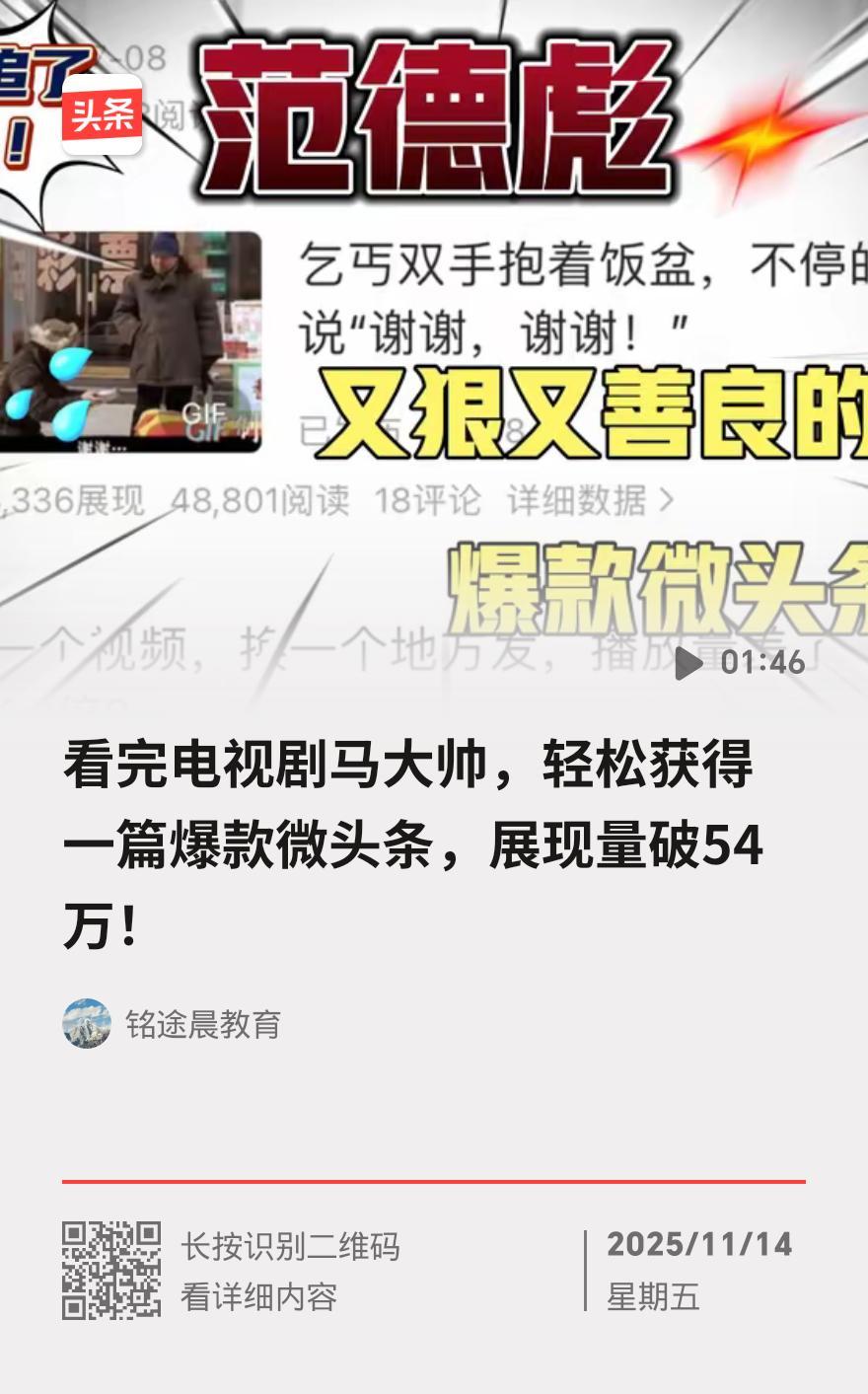谁懂啊!4天前一条微头条直接炸了!46万展现、23万阅读量,当时我激动得半夜起来刷了八遍后台,嘴角都快咧到耳根子,以为终于被头条“盯上”,离大V买车买房的日子不远了! 信心直接飙到顶峰的我,之后跟打了鸡血似的,每天咔咔更两三篇微头条,满脑子都是下一个爆款,结果现实给了我结结实实一巴掌——展现量骤降到三位数,阅读量在个位数徘徊,连两位数都摸不着边!这落差也太大了吧,从云端直接跌到泥里,条友们说的“爆一次就歇菜”,难道真是头条流量的魔咒? 可就算流量凉透了,我也没打算停笔!现在的我早就被头条“拿捏”了,一天不刷就浑身不自在,不码字手就痒得难受,妥妥的“上瘾”状态。创作这事儿,一旦钻进去就拔不出来,哪怕暂时没流量,每一次敲打键盘都是在积累,每一个字都是我的心血。 我就不信这个邪!坚持下去总有希望,万一哪天又撞上流量风口,高峰不就回来了?梦想还是要有的,万一实现了呢?等真靠头条赚够钱买了车,我第一件事就是开着车,挨家挨户去拜访支持我的友友们,当面给大家鞠个躬说声谢谢! 也拜托友友们继续给我加加油、鼓鼓劲,你们的每一个点赞、每一条评论,都是我扛住流量低谷的底气!