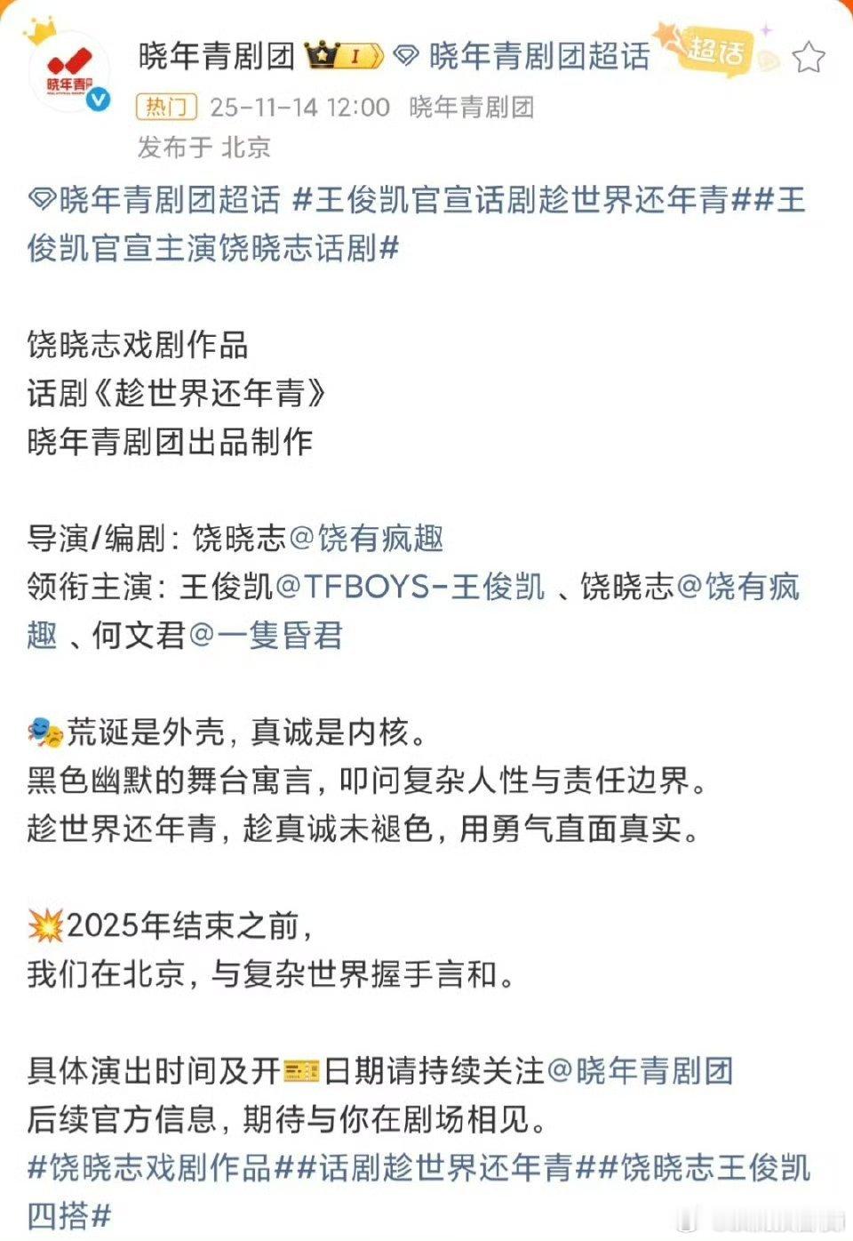 王俊凯话剧官宣 ,最后一个多月行程真的好满 要排练话剧 还有跨年的电影《无名之辈:意义非凡》上映 太期待了