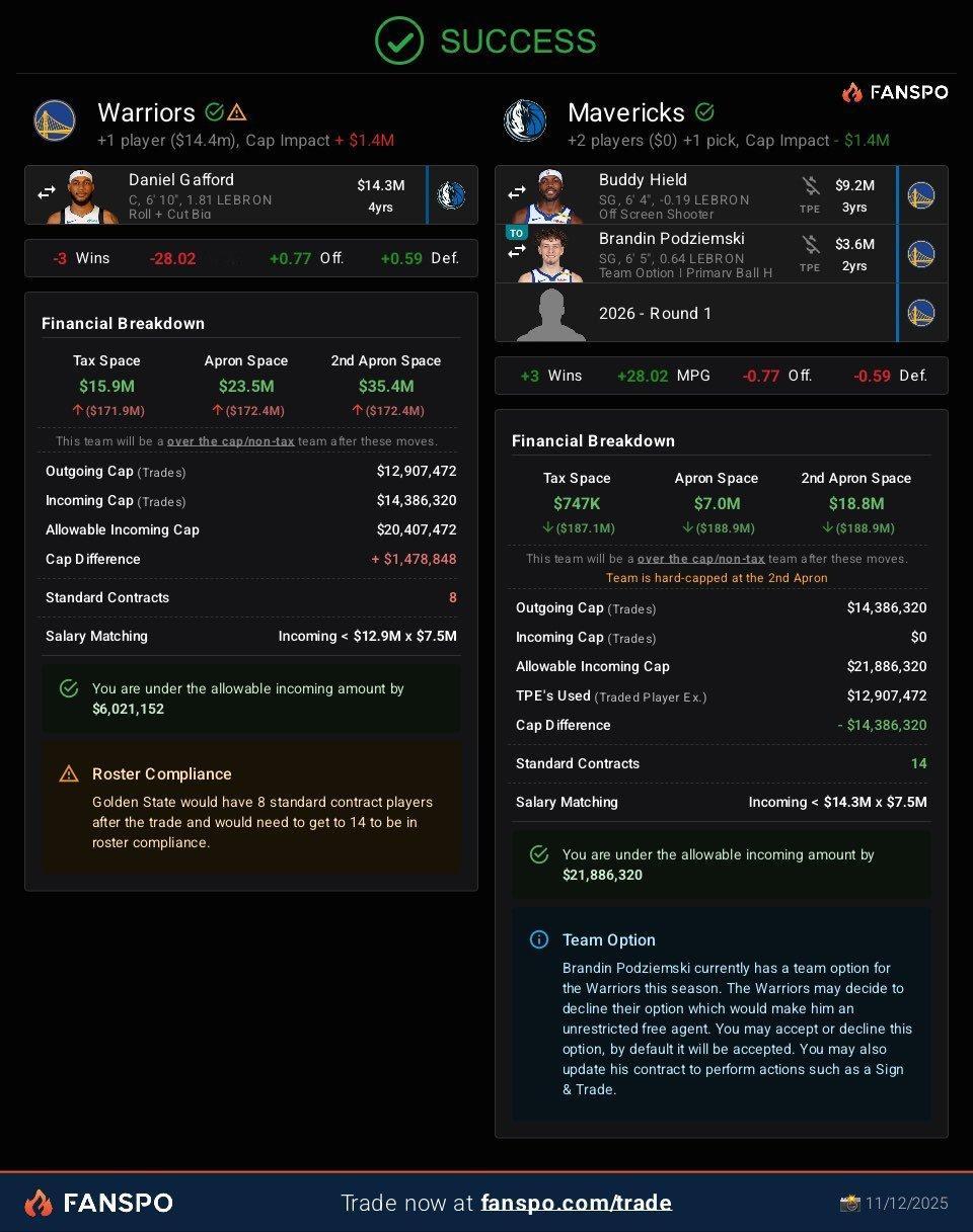 美网友真是为勇士操碎了心,AD那笔估计难 ,希尔德+波杰和2026首轮换加福德可