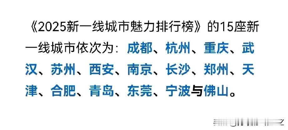 新一线城市。 竟然有东莞与佛山。 这两个算是深圳和广州的卫星城市吧。 卫星城市竟然能位列新一线,足见深圳和广州有多么的发达。 而郑州,长沙,西安等,都是集中全省之力,才建设了如此一个新一线城市,这一点上,和深圳、广州没办法比。