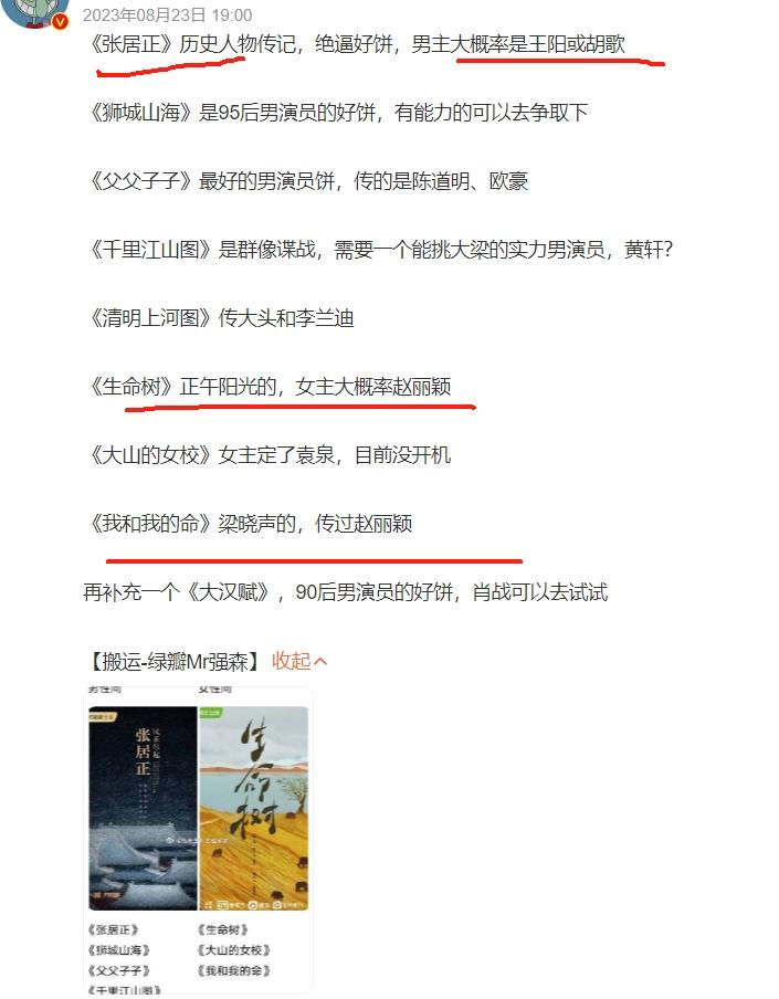 《生命树》用赵丽颖的名字热饼至少3年 从2021年开始,就一直说正午阳光的《生命树》由赵丽颖出演,直到2024年,赵丽颖对接这边才辟谣了这个饼,然后传到了杨紫身上,不过正午阳光也为此多次发布声明辟谣,说《生命树》还在筹备,演员未定,再到后来官宣杨紫,然后赵丽颖被说舔饼失败,赵丽颖虽然没出演这部剧,但确实是免费给热饼3年。