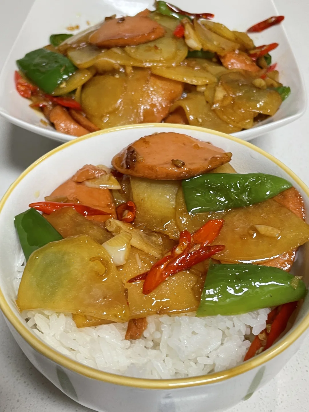 这样做出来的青椒火腿肠土豆片真的巨好吃,喜欢的姐妹试一试吧