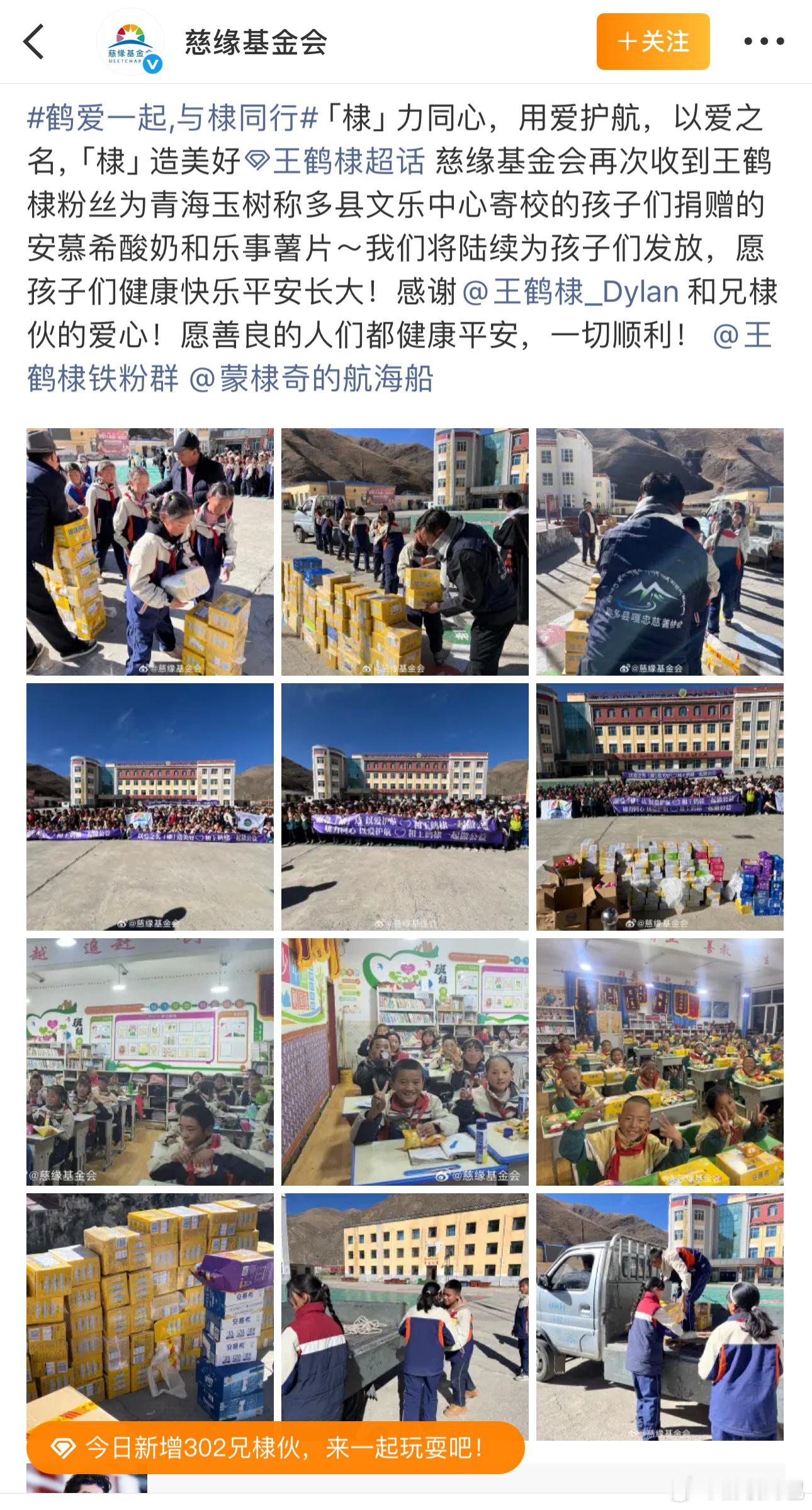 王鹤棣粉丝做公益,给孩子们捐献安慕希酸奶和乐事薯片诶!好有意义!