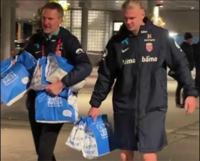 欧洲区世预赛,挪威4-1战胜爱沙尼亚,基本锁定了明年世界杯的正赛席位。赛后哈兰德被拍到和一名球队工作人员从球场外拎着几大袋芝士汉堡,数量大约有60-70个,回到更衣室准备和队友们庆祝胜利 ,开启放纵时刻