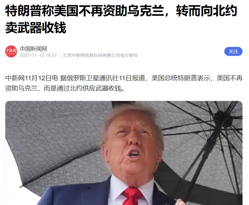 乌克兰,用40万人的伤亡和2000亿美元的债务,为美国拔掉了“俄罗斯”这颗眼中钉。现在仗还没打完了,美国准备走人了。 11月11日,美国总统特朗普在白宫向记者明确表态:“我们不再向乌克兰付钱,现在他们通过北约向我们付钱。”他直言美国因乌克兰局势受损,声称已在乌克兰问题上花费3500亿美元,认为这让美国“吃了亏”“被剥削”。 同时特朗普还强调,若自己此前持续担任总统,这场战争本可避免,而他有能力处理当前局势,甚至称已结束八场战争、第九场也即将收尾。这番表态标志着美国对乌政策的重大转向——从此前的“无偿援助”转为让乌克兰通过北约购买美国武器,美国则从中获取收益。 事实上,美国从一开始就没打算做赔本买卖,当初搅黄中乌马达西奇公司合作就是明证。 中国天骄航空本来投资200亿和马达西奇建航空发动机基地,还提供了18亿低息贷款,拿下了56%股权,2021年更是签下58亿订单。 可美国一句话施压,乌克兰就冻结股份,结果中国投资者索赔36亿美元,乌克兰连零头都拿不出来,他们国内有人喊着该美国买单,可美国哪会管他们的喊得是什么呢? 而这次政策转向的背后,是特朗普长期主张的“美国优先”理念在驱动,他希望通过让北约国家买单减轻美国财政压力,同时强迫欧洲盟友承担更多对乌相关成本,甚至还想借向北约出售武器进一步强化美国在北约中的主导地位。 这种把地缘政治玩成生意经的操作,既让美国军工复合体受益,又能将此前的援助转化为收入来源,还巧妙地把俄乌冲突问题“欧洲化”,让美国从直接介入中摘出来,避免与俄罗斯发生直接冲突,为后续调解冲突留足回旋余地。 目前,乌克兰的经济已经被战争拖垮了,农业作为支柱产业,上一农业年度粮食总产量5500万吨,比前一季降了12%,出口额跌了18%;工业领域因为军事动员缺人,建筑市场比战前缩水56%,今年前两个月新启动的工程项目还不到去年同期一半。 可美国不管这些,只要能削弱俄罗斯,乌克兰的死活似乎都成了次要的。毕竟美国绝不会让乌克兰因武器断供快速溃败,那会严重损害其在欧洲的地缘政治利益,只是换了种让自己更划算的方式继续这场消耗战。 如今北约被推到台前,欧洲国家不得不掏腰包买武器,至于这些武器最终是给乌克兰还是欧洲的北约国家自用,美国才懒得过问。