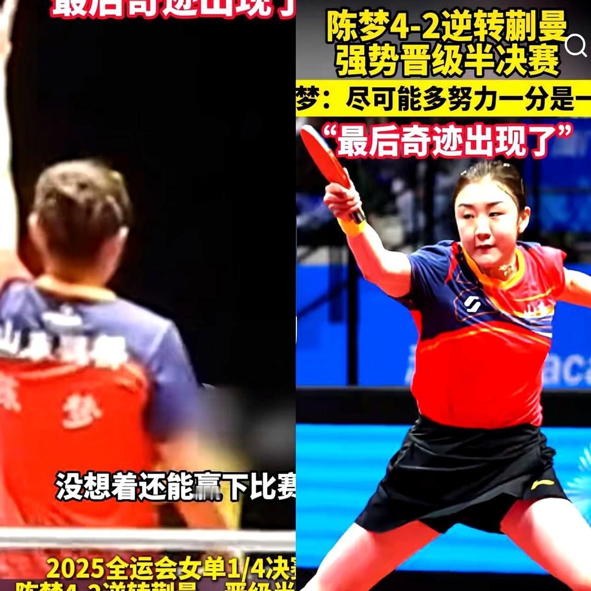 人在运动场上都信奉“状态决定一切”,但陈梦用事实反击了这个说法。 她在连续缺少系统训练九个月后,依然能靠强大的心理素质逆转比赛,让人开始重新思考“天赋”和“经验”的比重。 对她来说,体能和肌肉的下滑似乎成了常态,但关键时刻,她那沉淀多年的比赛经验成了“秘密武器”。 面对孙铭阳4-0横扫、蒯曼两局落后的逆境,她没有崩溃,而是用心理韧性硬拼逆转。 教练和队友都说,她的意志力是队伍的“硬核”。 如果你以为只有身体条件才能赢比赛,那就错了。 陈梦用行动告诉我们,赢的关键可能在于“心态”比身体更重要,也更难被训练出来。 这不禁让人想:在这个快节奏、拼体能的社会,真正的“硬实力”是不是更偏向心理而不是肌肉? 正如陈梦所展现,她的逆转不是偶然,而是多年的沉淀和对抗逆境的底蕴。 可能每个人都在追求外在的“状态”,但真正能逆转命运的人,可能是那些内心坚韧、拥有丰富经验的人。 所以,别只盯着“状态”,更要懂得培养自己的“韧性”和“底蕴”。 毕竟,最强的战士,未必一定是体能最高的,而是那个能在逆境中坚持到最后的人。