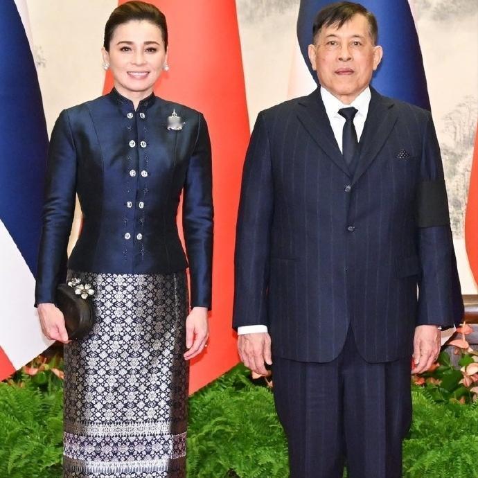 玛哈国王抵达北京第二天,和苏提达王后出席活动! 11月14日,抵达北京的玛哈国王和苏提达王后开始营业了,画面中,玛哈国王换上了黑色条纹西装搭配深色领带,胳膊上还佩戴一个黑色布条,据悉这是为了纪念诗丽吉王太后的,换上西装的玛哈国王身材确实有点胖了,很多网友总感觉玛哈国王有替身,不过这个肯定是真的,虽然玛哈国王身材发福了,可是气势上还是有的。 除此之外,苏提达王后也穿上精致的泰国传统服饰,不知道为什么,苏提达王后没有戴黑色布条。不过她穿的衣服都是深色系的,要知道苏提达王后很喜欢穿浅色系的,再加上她这次和国王首次访问北京,肯定会精致的打扮一下,由于诗丽吉王太后的去世,他们也只能穿深色衣服。 不管怎么样苏提达王后的气场和魅力是一点都没有变化。