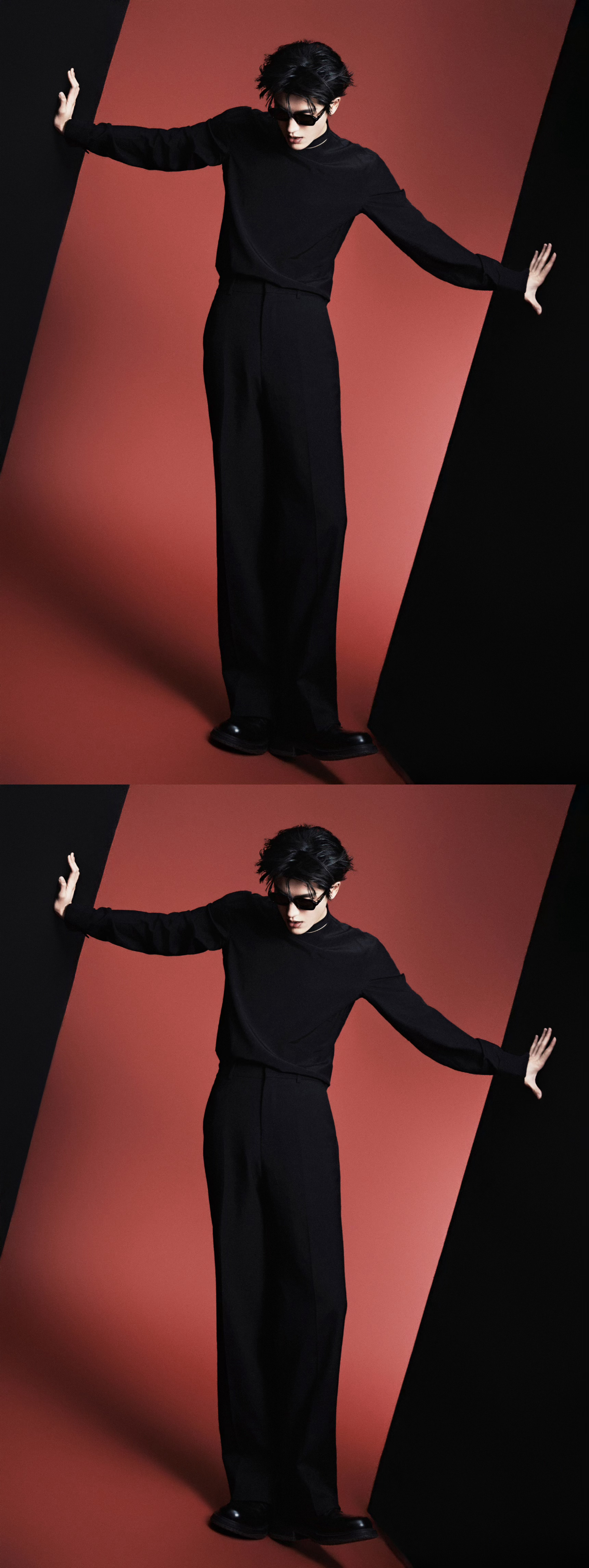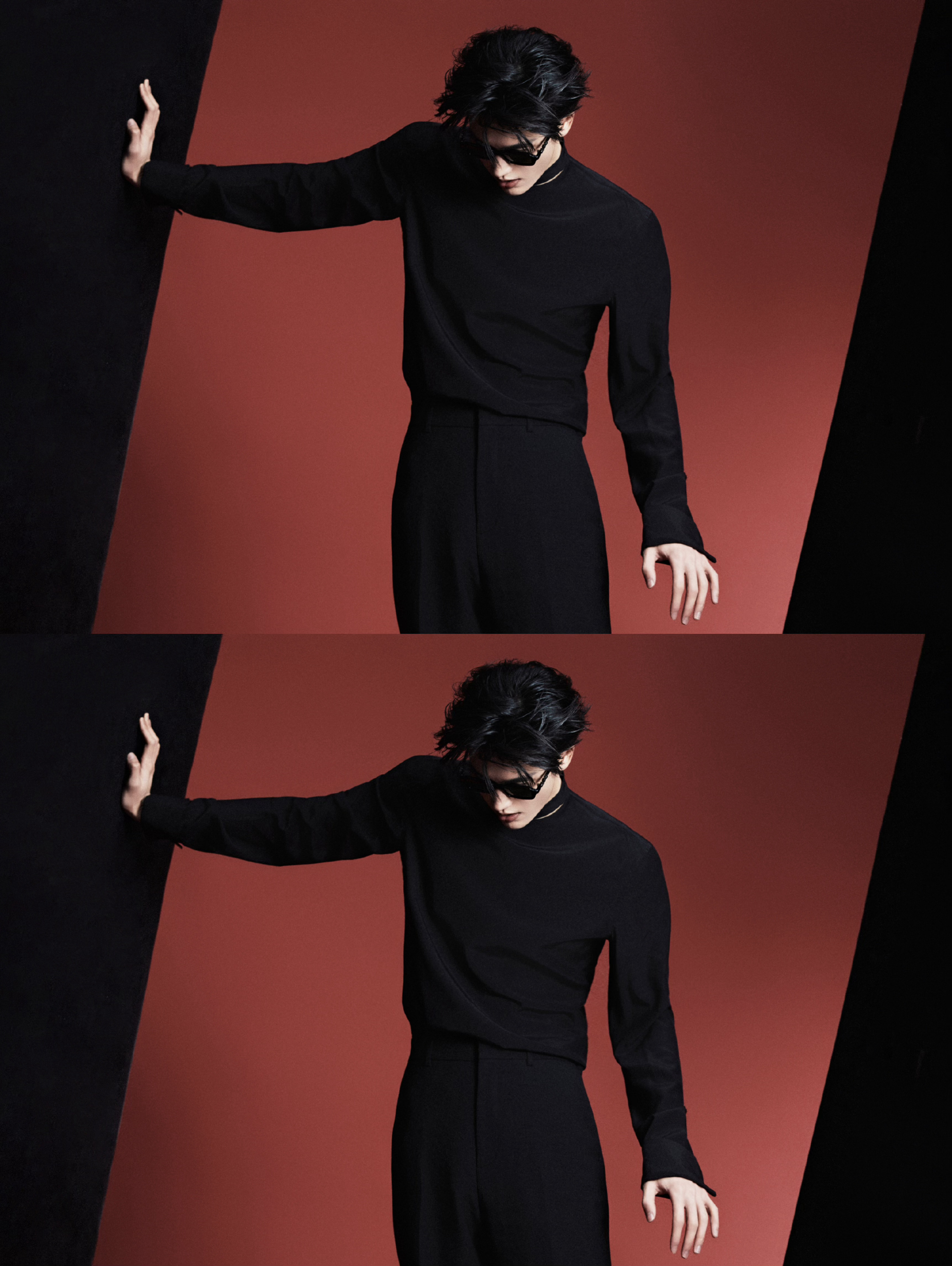 黄俊捷今日份新鲜营业照,墨镜+黑皮衣造型,太酷了太酷了😎