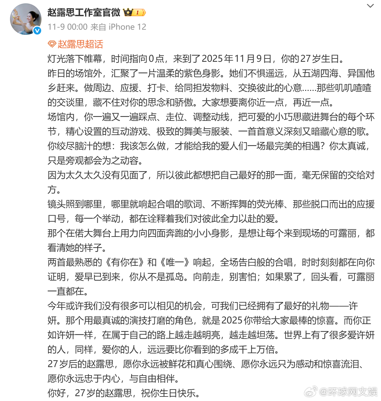 【 】据天眼查,近日,赵露思原经纪公司天津银河酷娱文化传媒有限公司发生工商变更,上海云锋新呈投资中心(有限合伙)、北京创时信和科技有限公司等5家公司退出股东行列,北京大鱼快乐文化传媒有限公司持股比例由20%升至48%左右,同时多名董事卸任。据悉,11月8日,赵露思“思念如面”音乐会在成都举行,赵露思在生日会上宣布成立新工作室、加入新公司北京熠而叁思文化科技有限公司。11月9日凌晨,赵露思工作室官微发文,正式宣布回归并开启新阶段,重新出发,值得注意的是,工作室官微账号简介已删除原经纪公司“银河酷娱”标识。