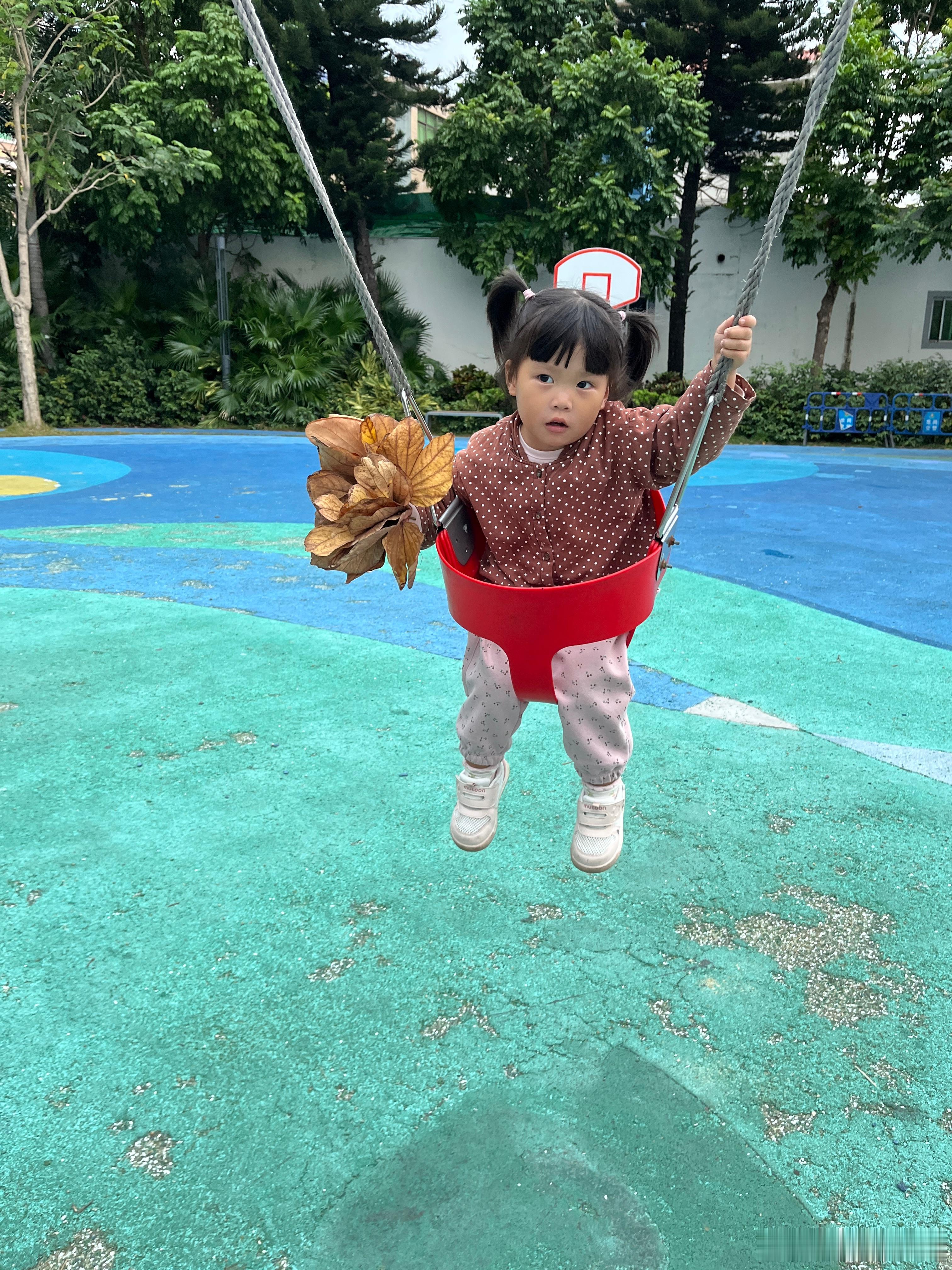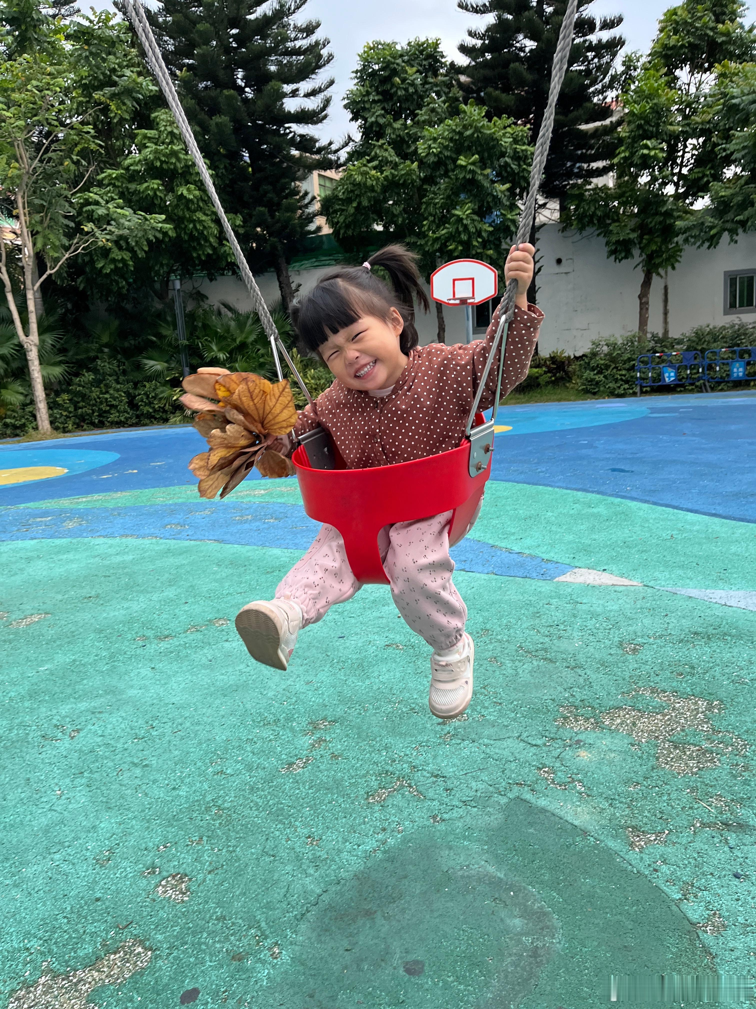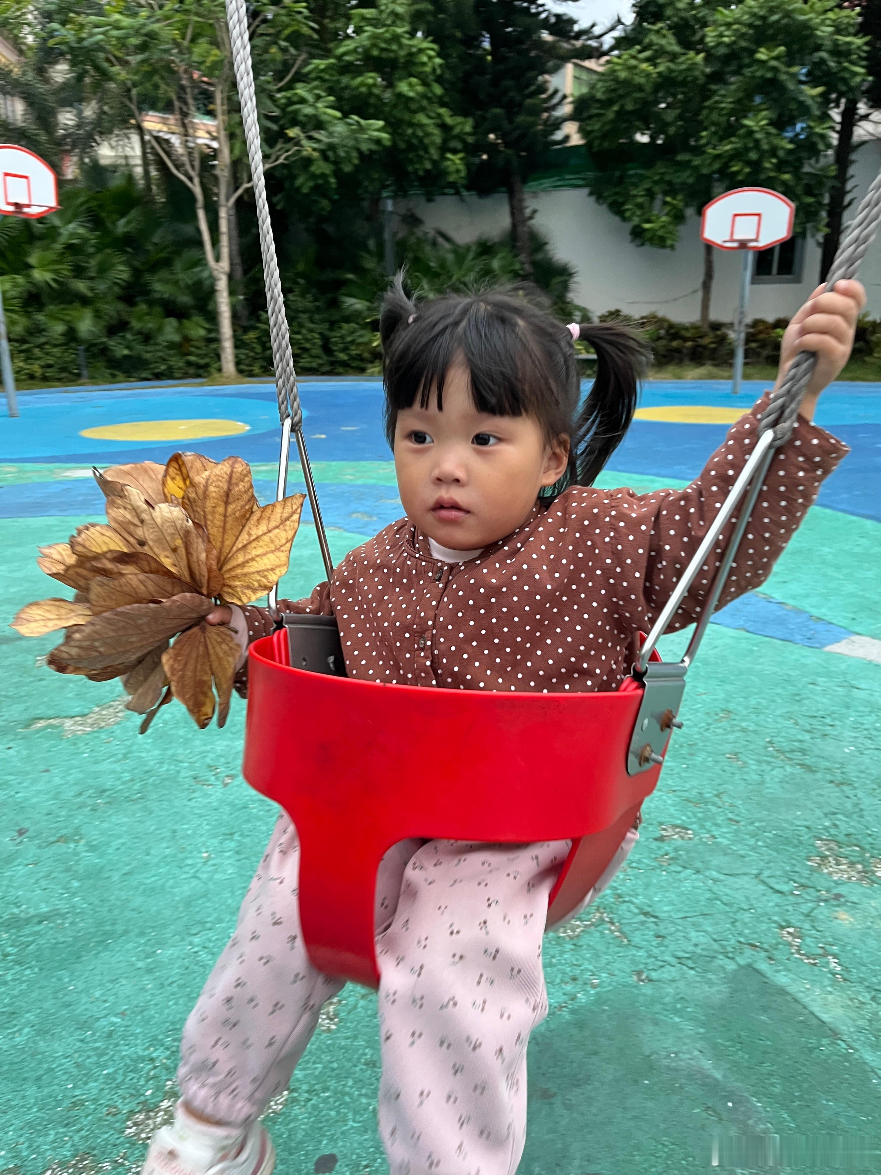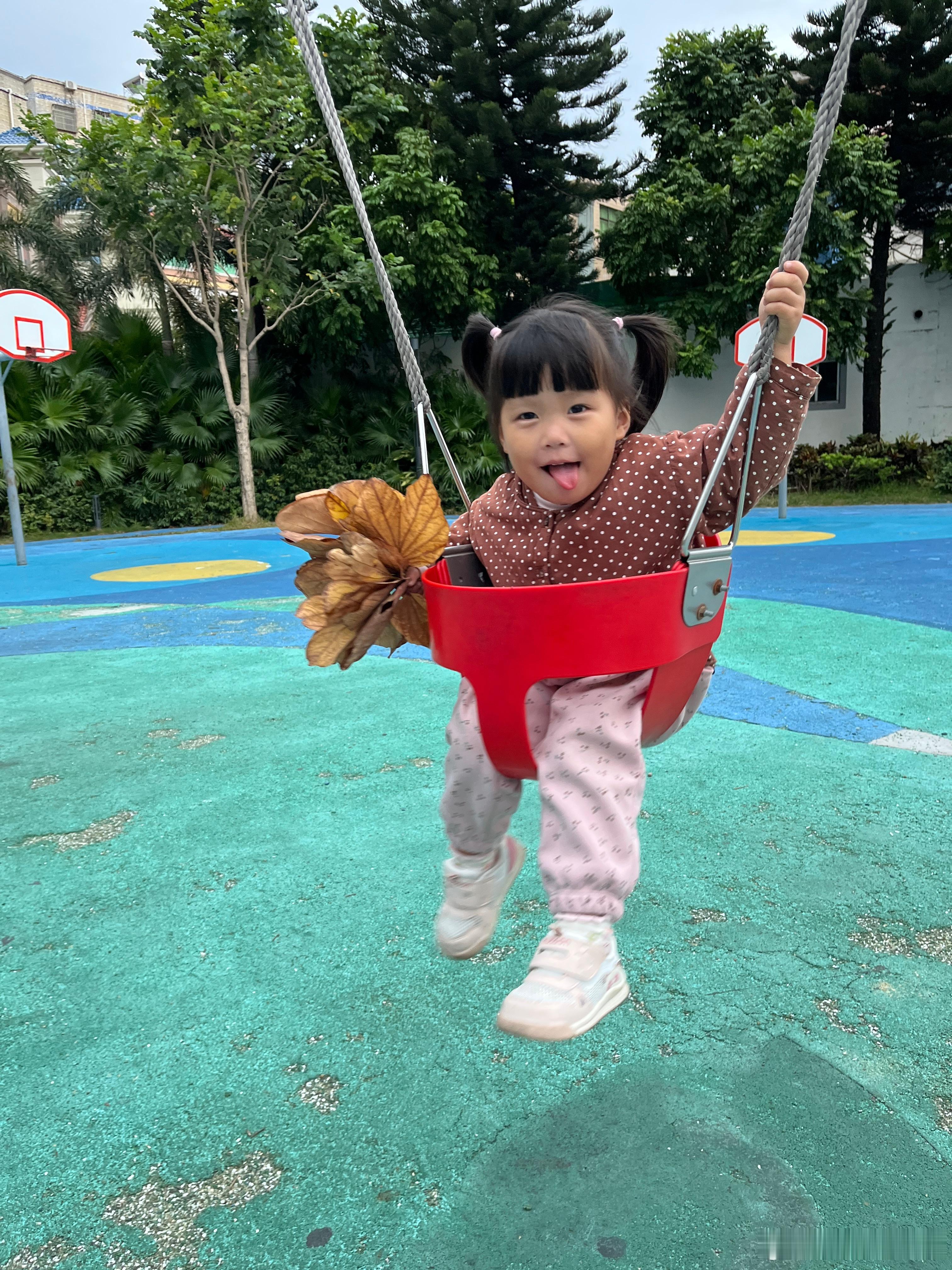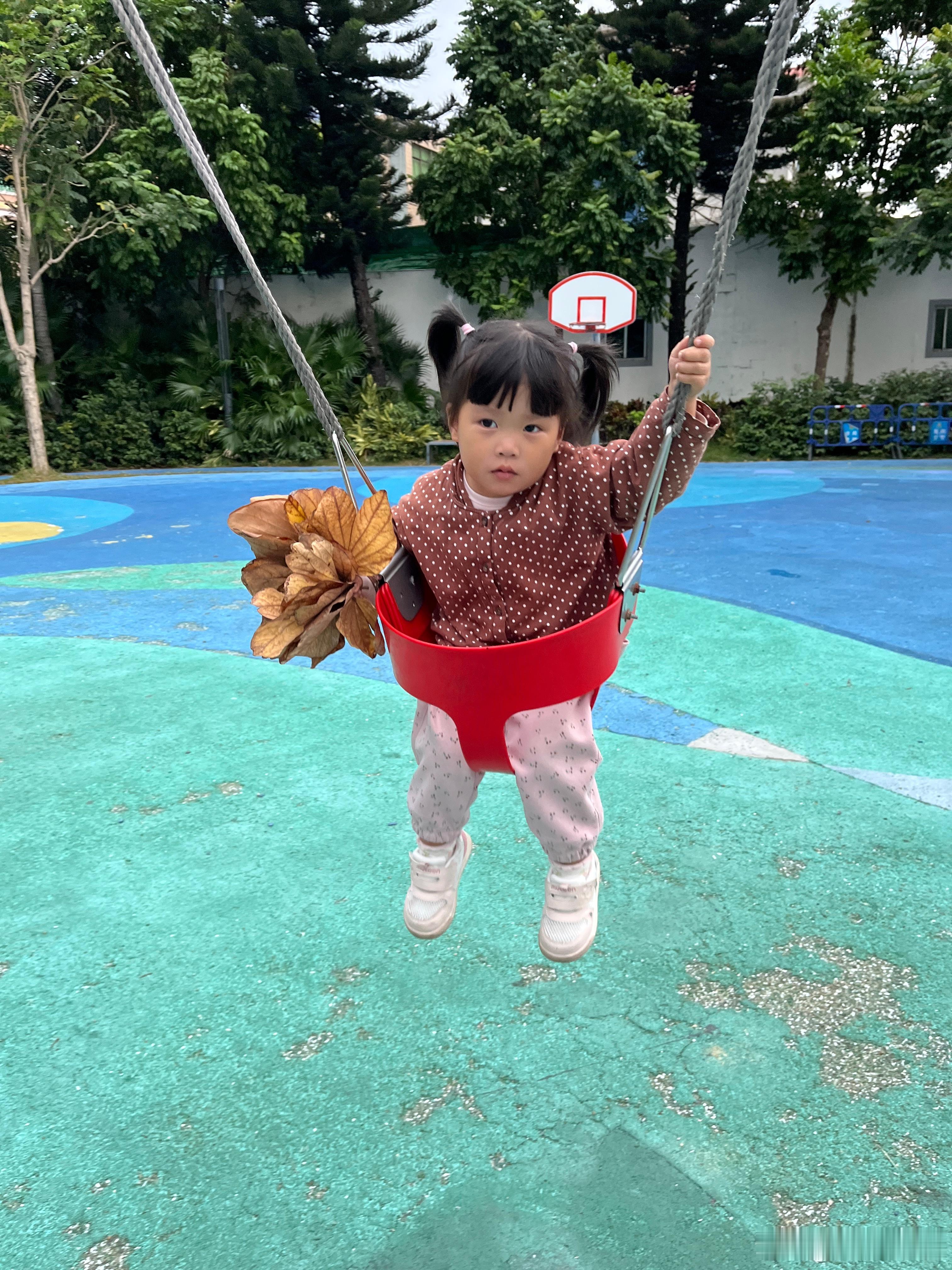 昨天的库存,捡了好多树叶,带着它们荡秋千,好开心。在我心里,她已经是冠军,战胜了环境,自己,后面好好养好身体。