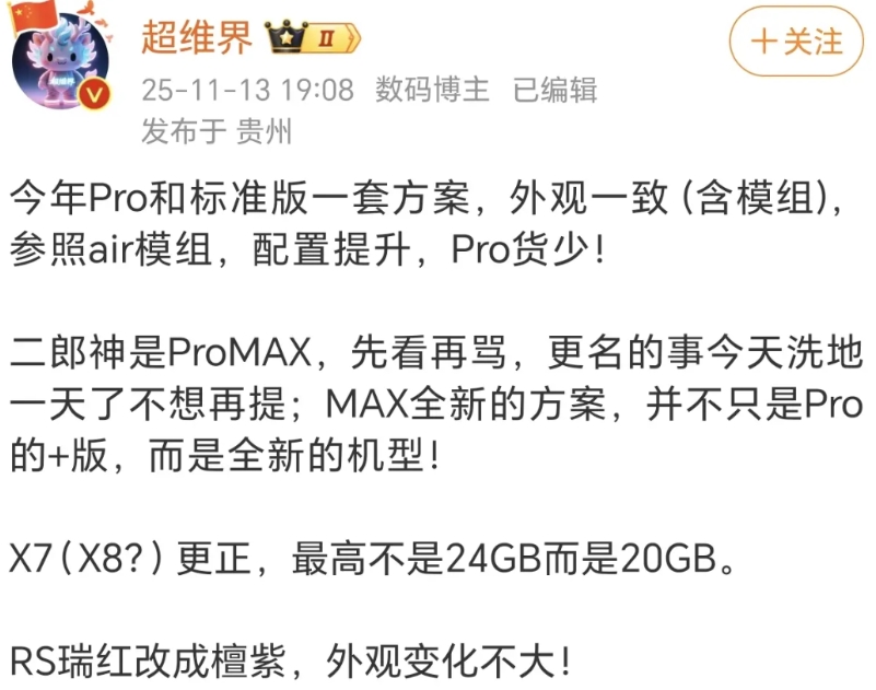 有什么好说的,自己改名ProMax,让自己从一个引领者变成一个跟随者。什么时候又开始承认要需要靠改名来带动销量了?别人改名是为了对标,你改名是承认不足吗? 不贵过最后还是要靠销量来说话,这种方式无非也是想复刻Nova11se的热度?
