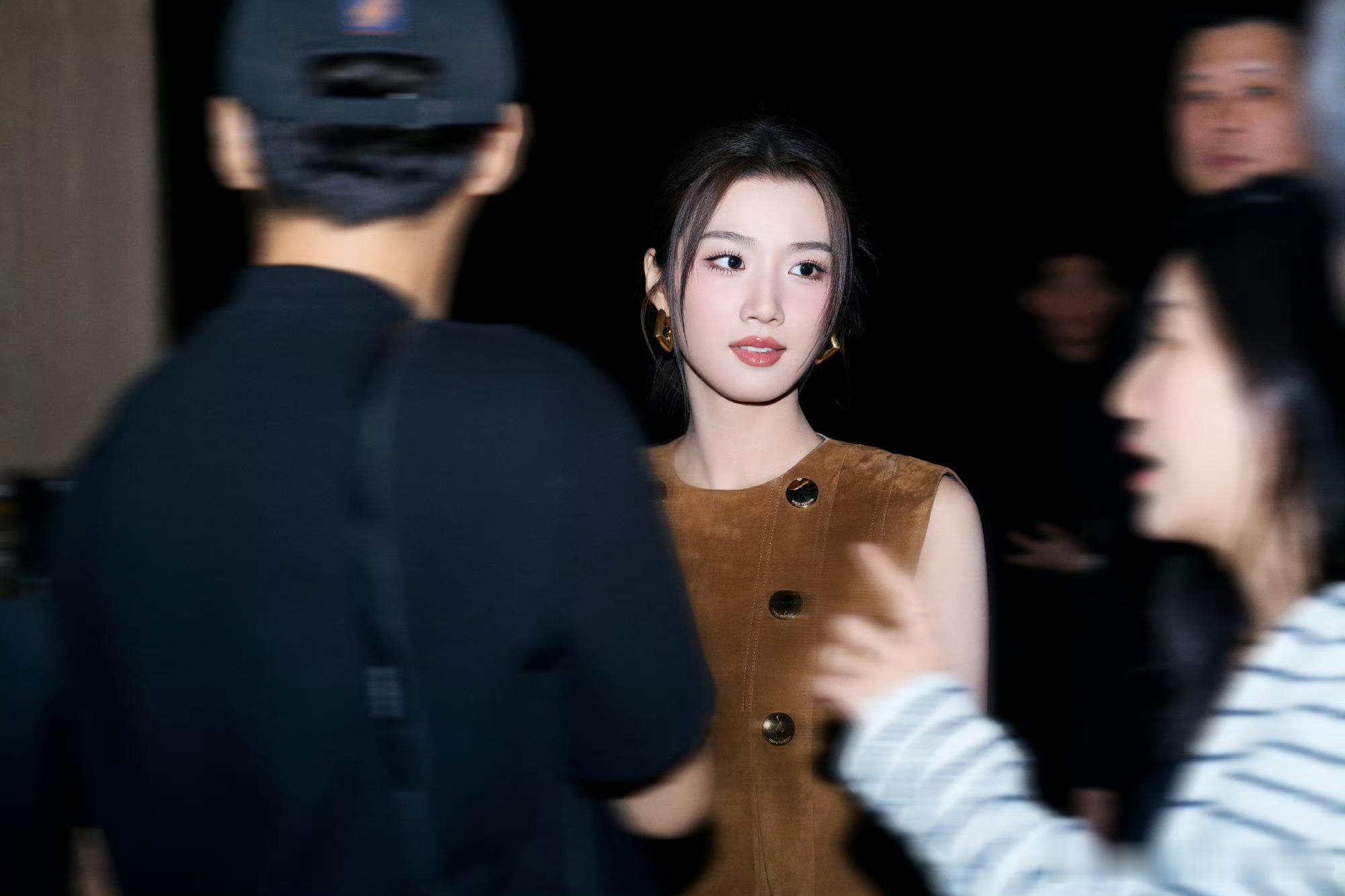 刘亦菲喝醉酒微醺的状态被拍到,脸上已经泛起了红晕,被拍到后眼神微怒。刘亦菲明星