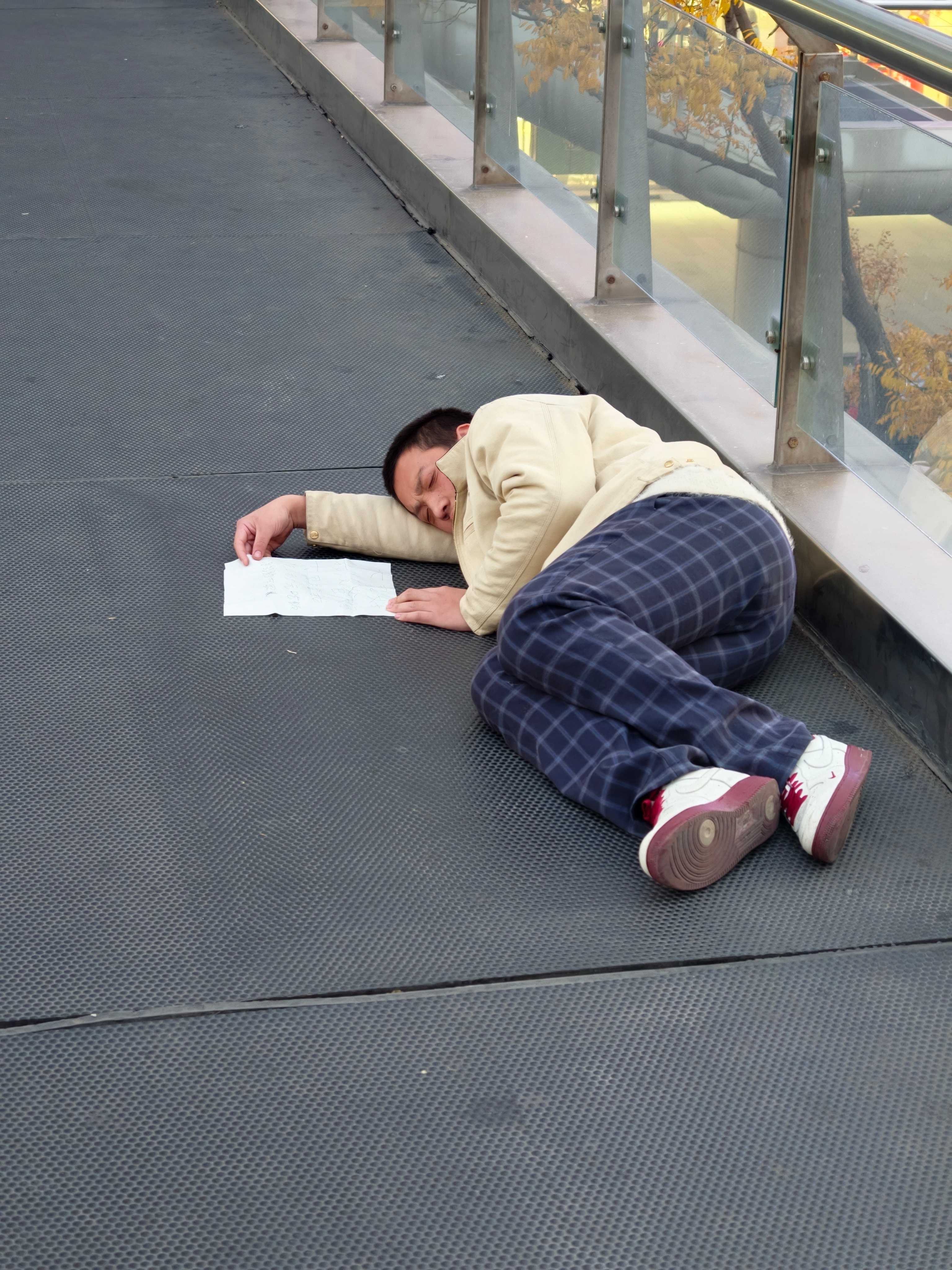 完全不理解,这有胳膊有腿。看着年纪也不小了,穿的也还都挺得体的。直接躺地上就开始要钱,问题是,这也要不到钱啊