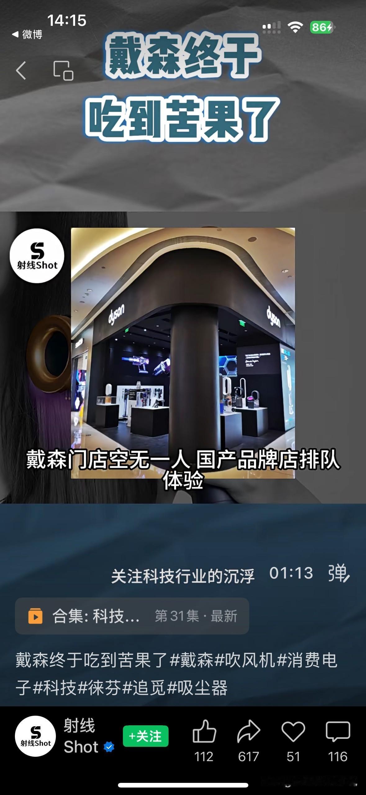 戴森如今销量和利润都大跌,原因何在? 技术不是没有进步,而是其他品牌技术进步更快,而戴森价格一直维持在云端,就算双十一降价,吹风机3000打五折,和那些卖几百一百几十的比起来,没觉得亮点在哪里。最重要的,是现在商业叙事已经变了模样吧!以前中产们都乐意为品牌溢价买单,买的是一种尊享的享受,如今消费不振,就连中产也捂紧口袋,过一点小资调调的精打细算的日子吧。
