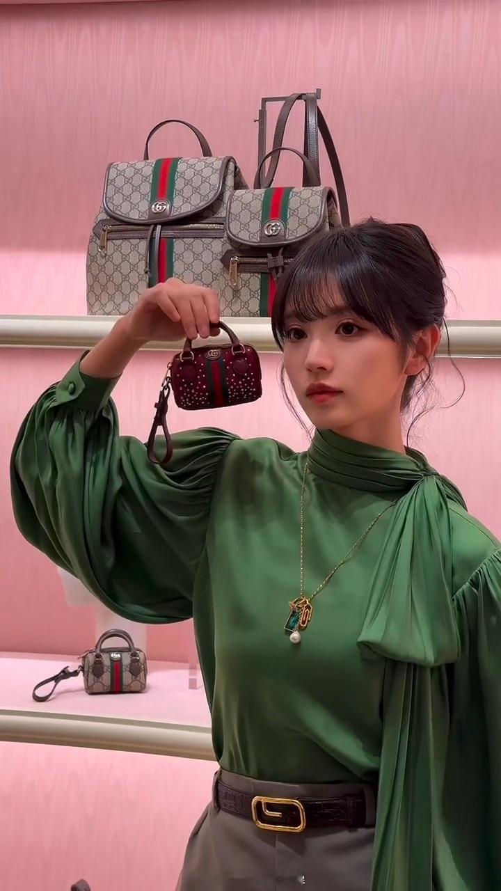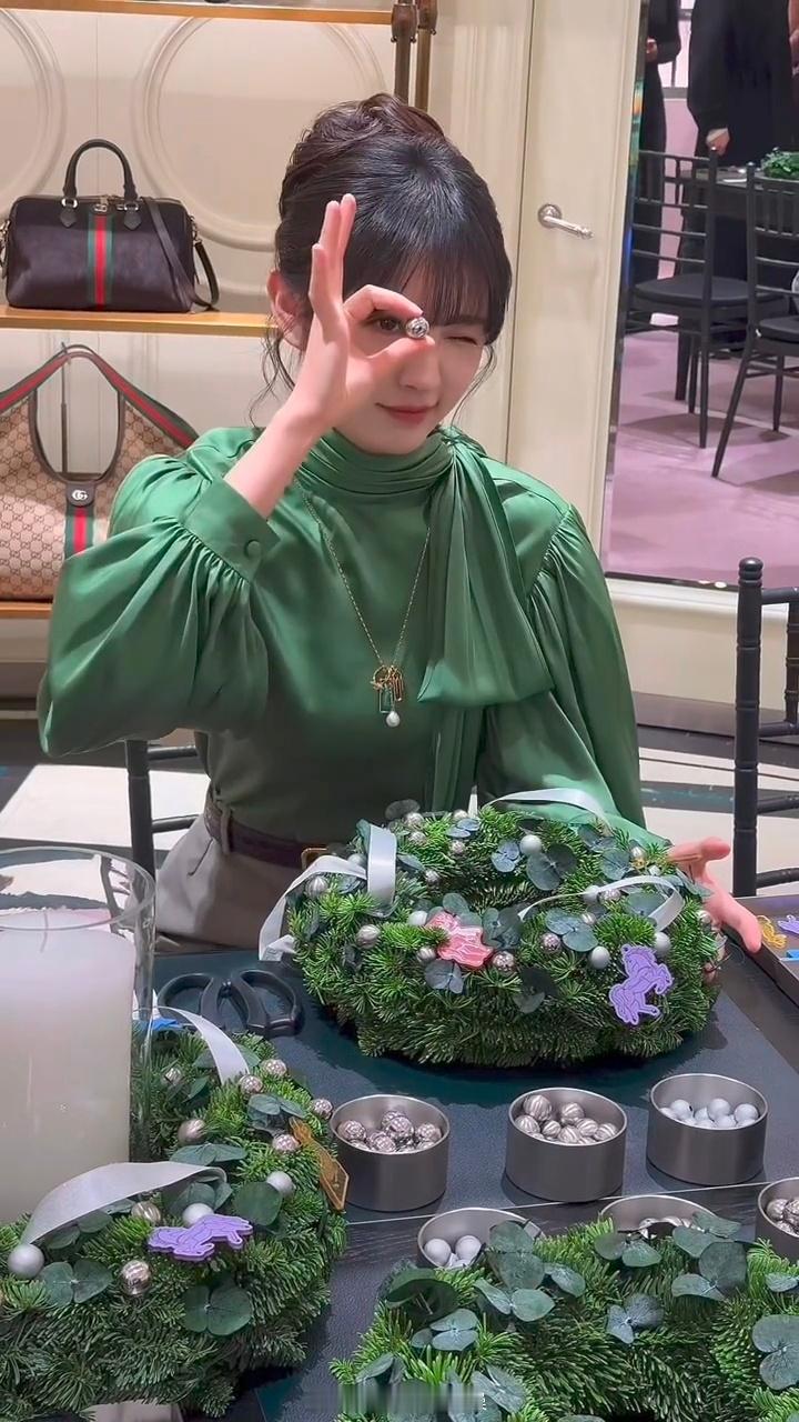 田曦薇今日上海恒隆广场Gucci线下活动,好可爱的小田