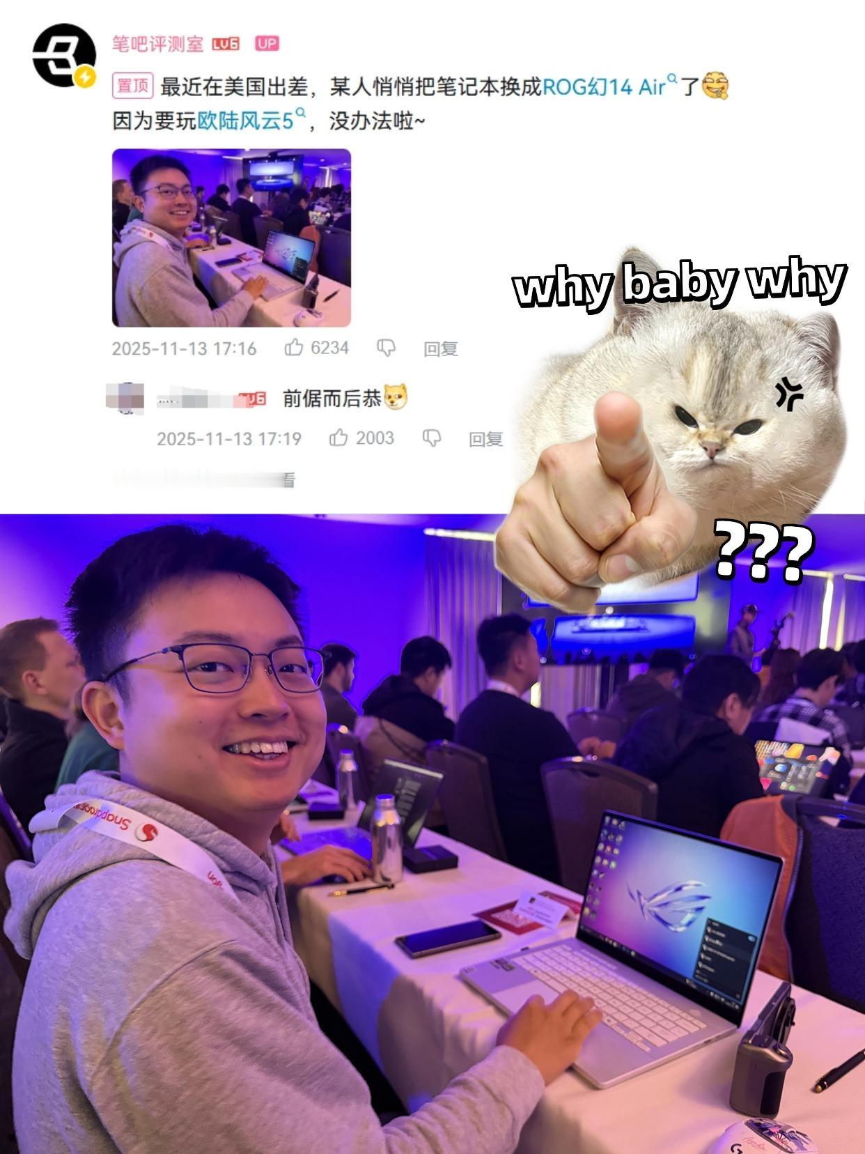 没招了!极客湾云飞终究拜倒在ROG脚下?🤣 人怎么能嘴硬成这样!!云飞之前对Mac的痴迷程度,关注极客湾的老粉都知道, 在跟笔吧猪王的对话中也是三句不离Mac办公哪哪好, 结果转头就被抓包打脸了,猪王拍到云飞偷摸地把MacBook换成ROG幻14 Air, 据说是为了玩《欧陆风云5》,没招了~ 果然男人选电脑,嘴上说着“Mac各种好”,身体还是诚实地向Win本低头hhh 不过该说不说,ROG幻14 Air确实精准戳中很多人的痛点 便携性不输MacBook,带出门不会有负担,而且性能也在线,工作之余还能用它来打打游戏, 这种兼顾便携性+不错的性能释放的组合,在当前市面上属实没啥对手 极客湾 笔吧评测室 ROG幻14Air 便携游戏本 云飞同款 Mac真香定律
