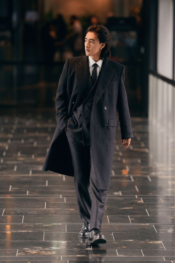 此沙穿黑风衣自带气场buff,宽肩廓形撑出范儿,正经西装领混着街头松弛感,daddy气质拉满,风拂衣角显生人勿近,近看痞得刚好,正经带坏太有匪气!