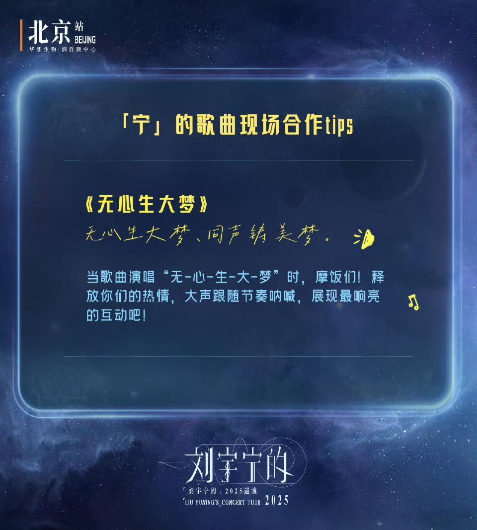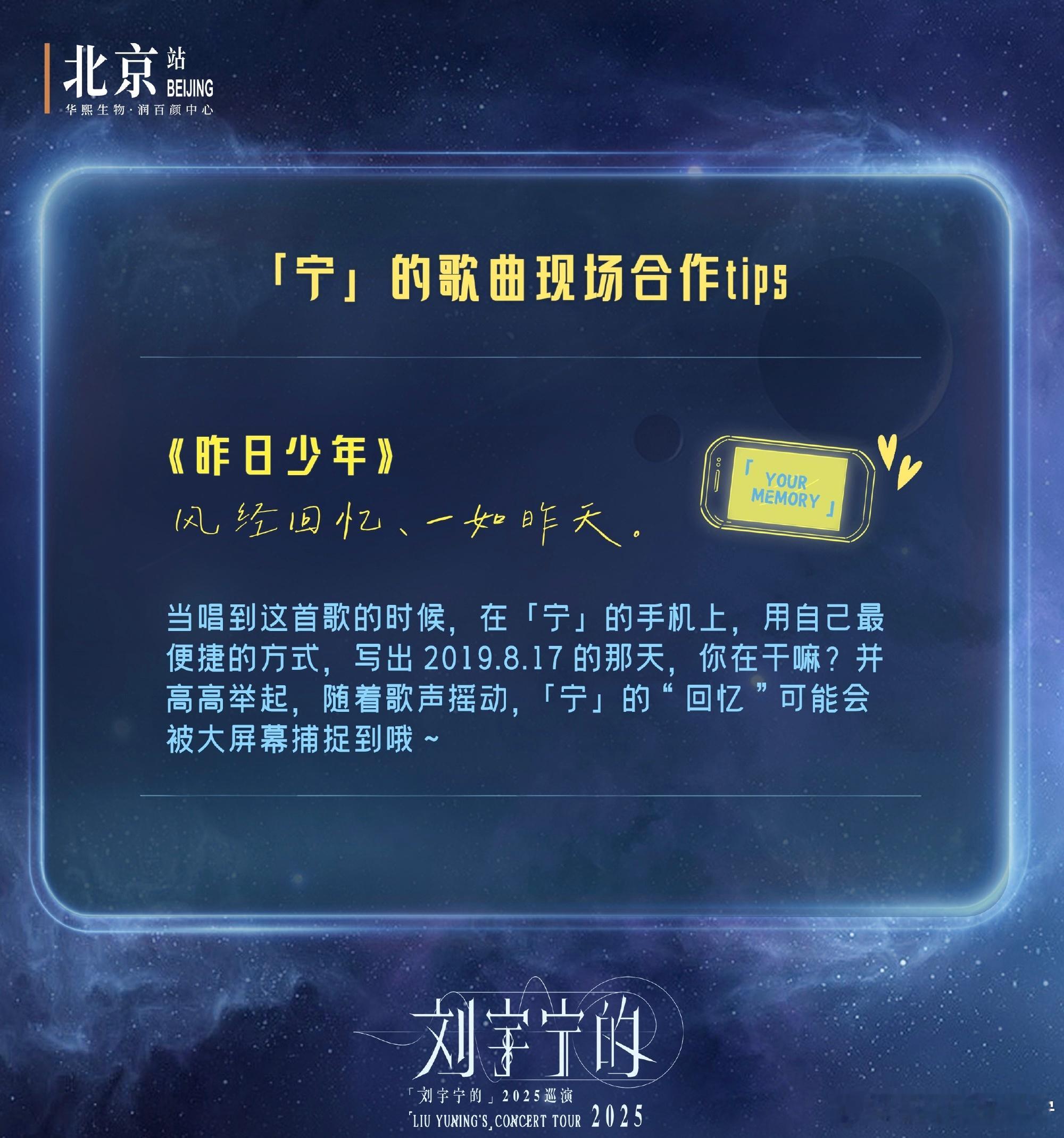 | 明天,很快就到来了。 看这意思,《漂洋过海来看你》不唱了吗?还是很喜欢这首歌的,太期待《昨日少年》啦,我六年前到底在干嘛?!明晚,不见不散啊刘宇宁北京站观演Tips | 刘宇宁北京演唱会刘宇宁