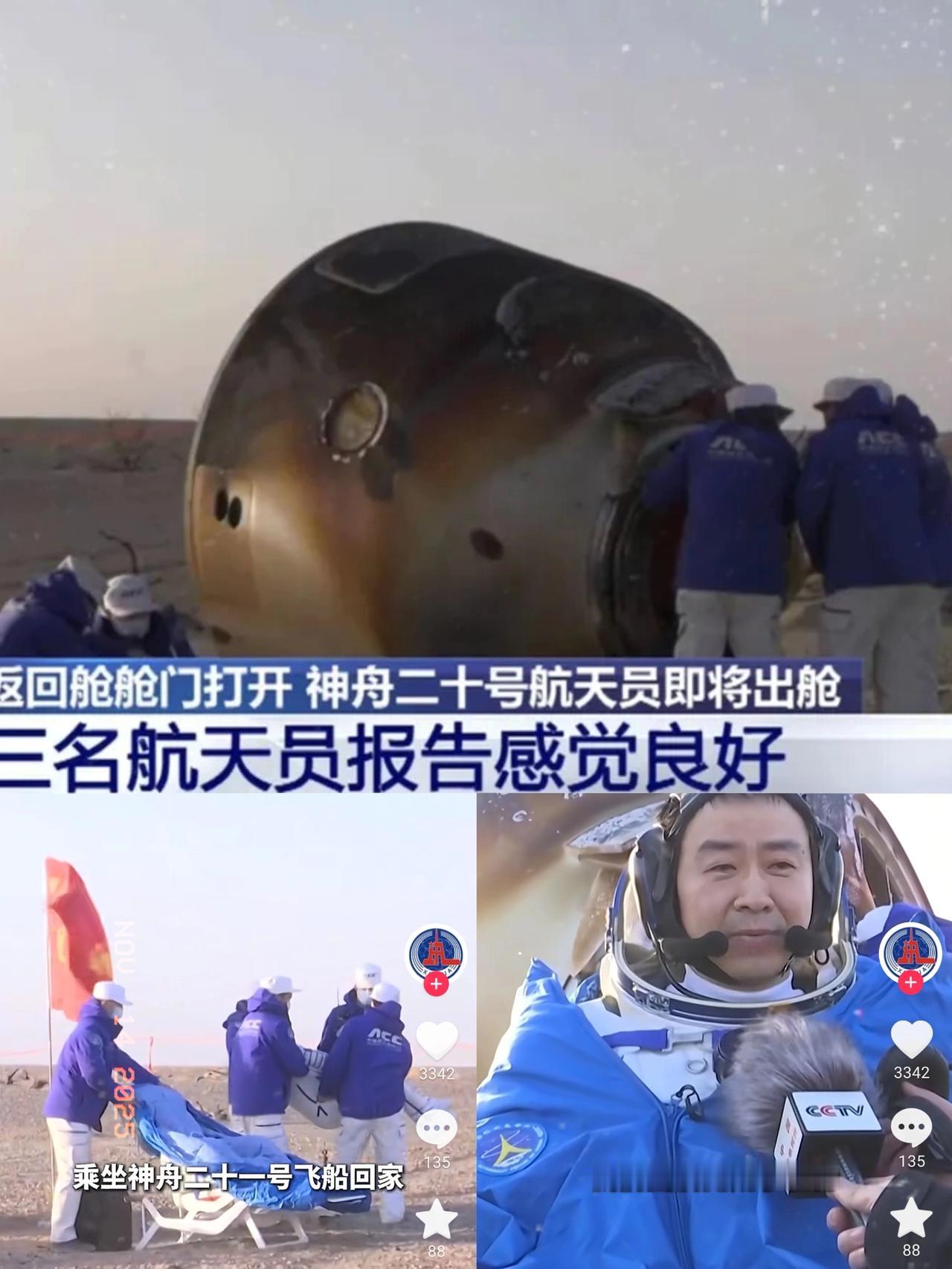 直播见证神舟二十号乘组回家,这一幕太好哭了,全程激动到落泪! 神舟二十号乘组刚着陆!专家说他们还带着失重状态,暂时没法出舱,得先慢慢适应。 医保的工作人员早就准备好了,三辆车妥妥待命,里面不光有空调保持舒适温度,还装着热腾腾的红烧面条加鸡蛋——从空间站回地球花了5个多小时,这会儿正好到饭点,太贴心了! 看着他们一点点适应地面环境,真觉得航天员太辛苦了,心里又激动又跟着揪着,连大气都不敢喘,就盼着他们顺顺利利恢复过来~ 你是不是也在为航天员揪心?评论区说说你的感受呀~