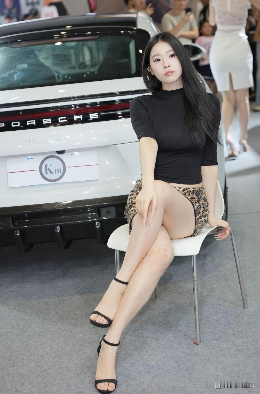 东莞车展车模“傻猪”,黑色紧身上衣配豹纹短裙,鹅蛋脸可爱到极致,有些“傻白甜”的感觉,怪不得会给自己取这个艺名,而且坐姿也非常有礼仪,是一个有素养的甜妹,虽然腿上膝盖上的伤带来些瑕疵,但是整体还是比较完美的,大家觉得她甜度能够打几分?美女车展 车展妹子