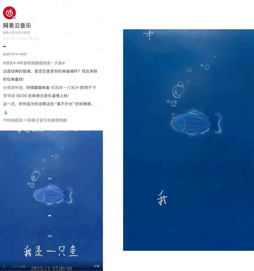 梓渝新歌我是一只鱼零点上线,这声音真甜呀,就好像喝了刚泡的的奶茶,心都化了!期待