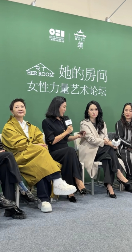 伊能静这次与苏芒等人一起参加上海021艺术展,并坐在台上发表讲话。