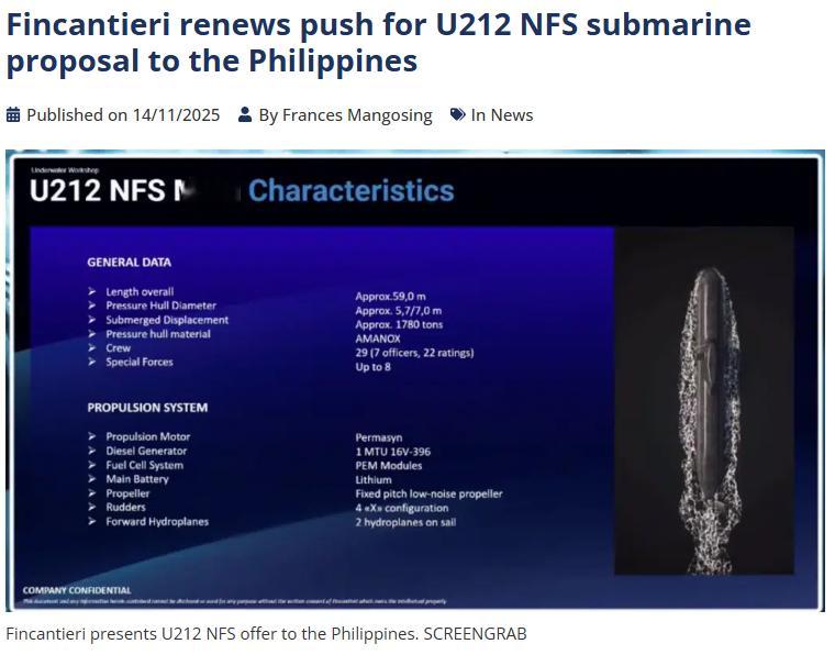 芬坎蒂尼与TKMS为菲律宾潜艇项目提供U212 NFS方案