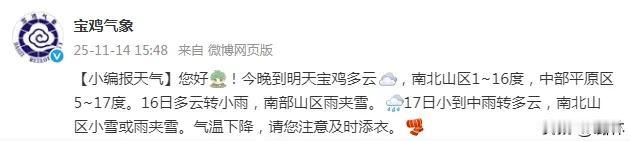 气温下降,宝鸡这里雨夹雪来了!