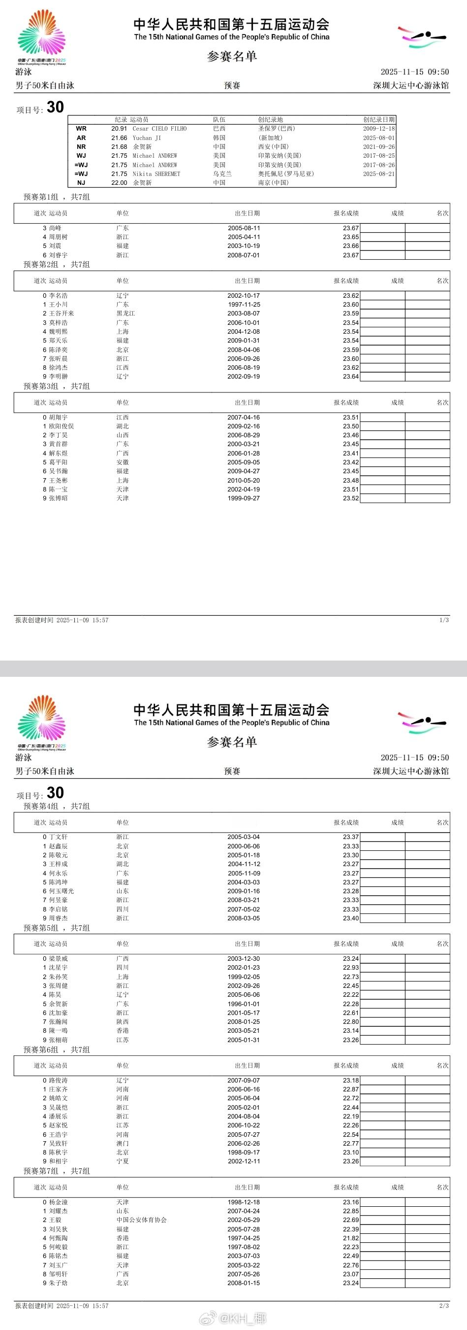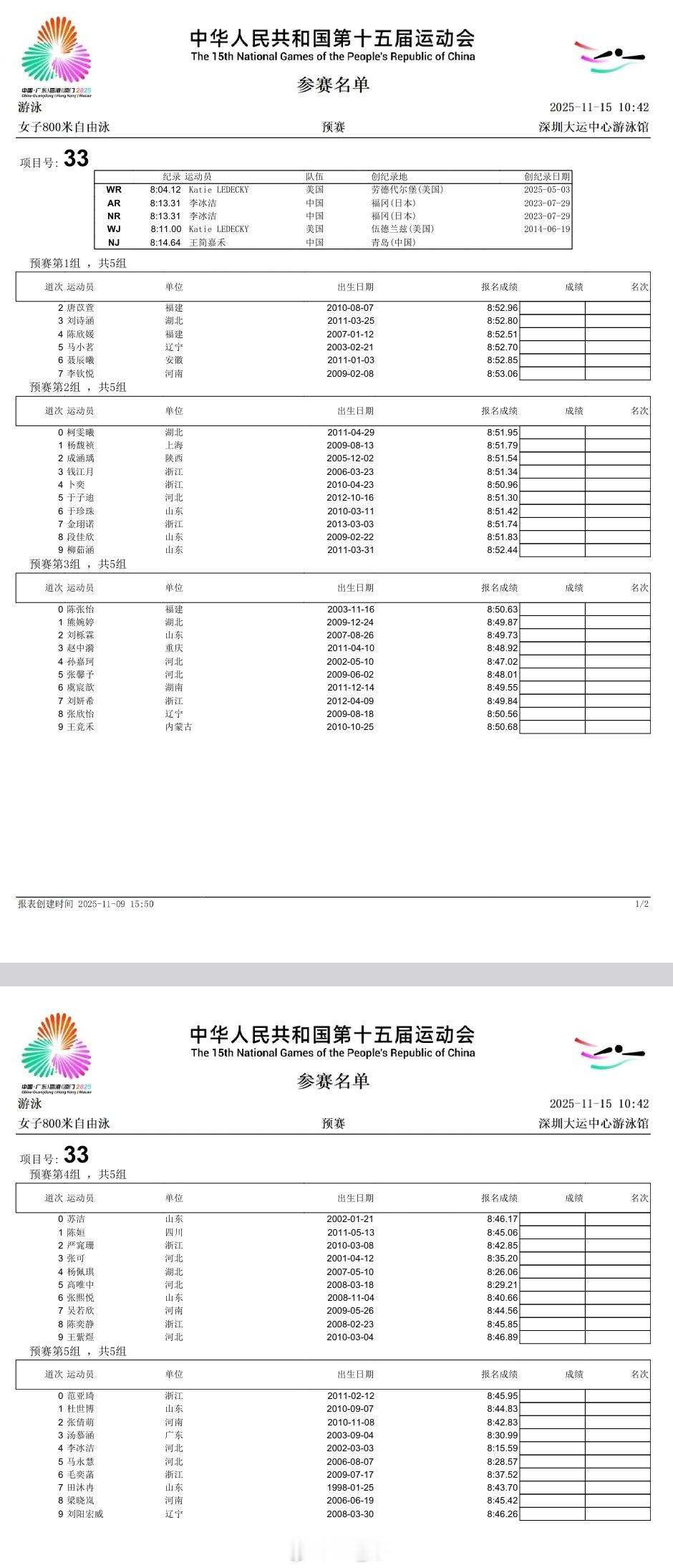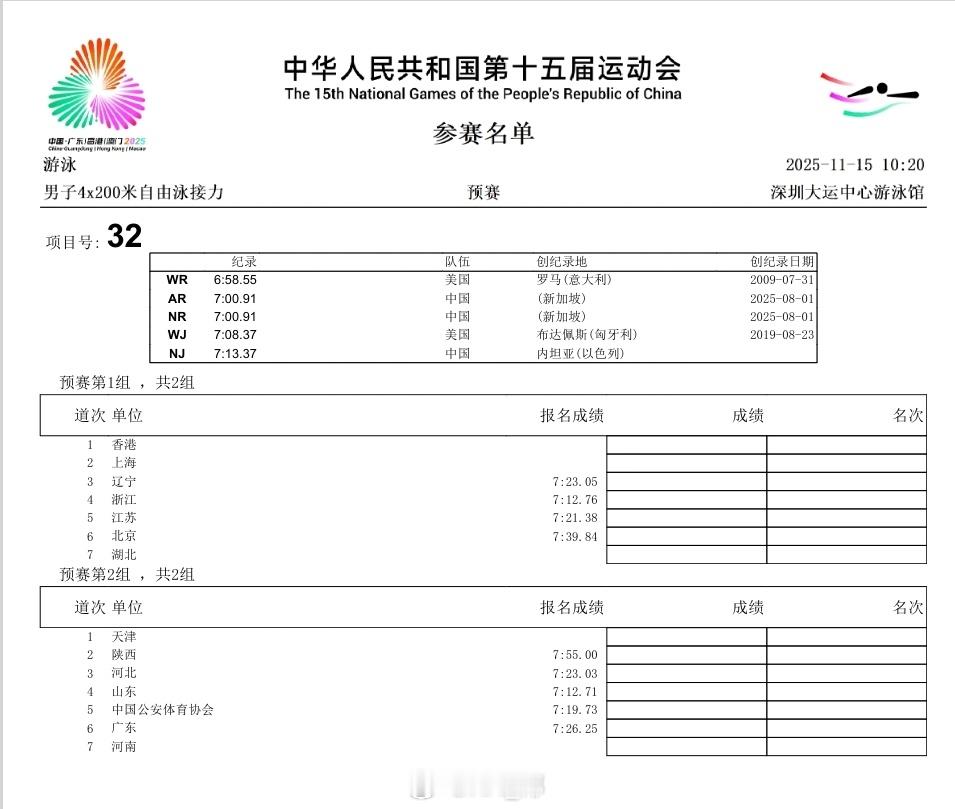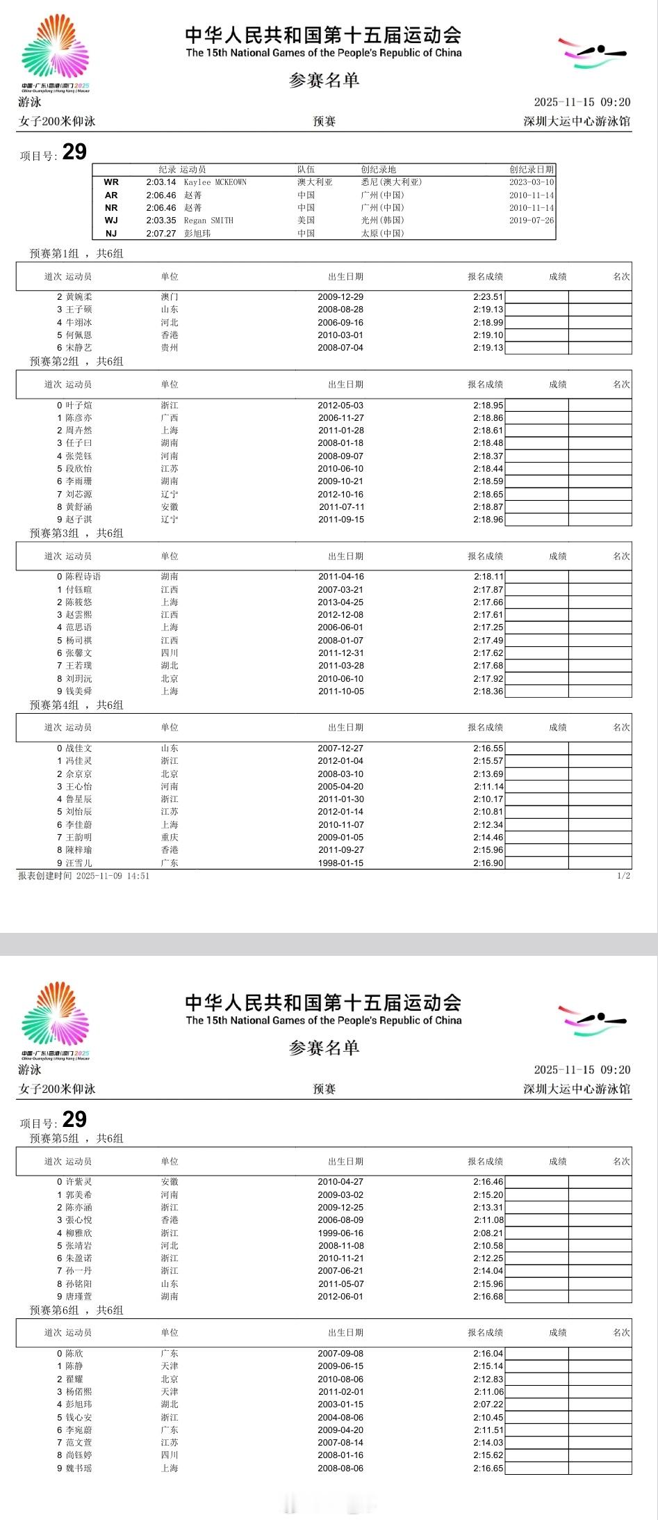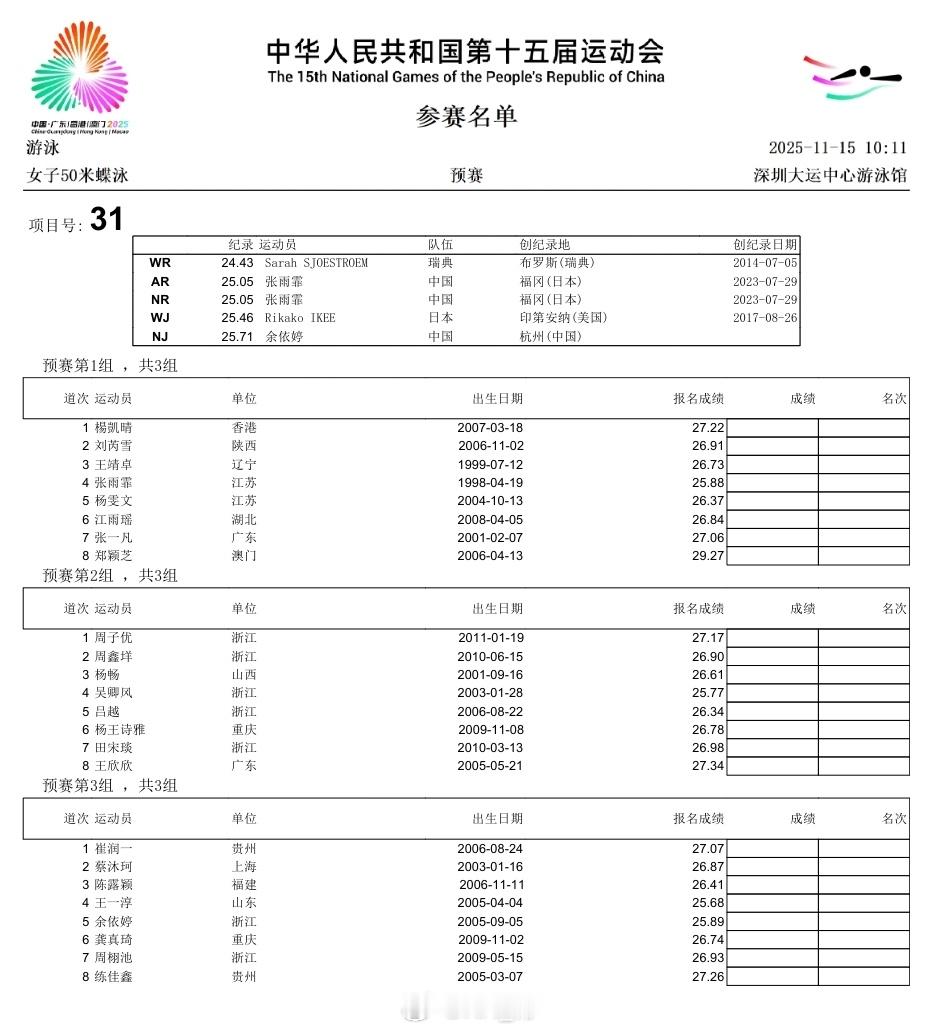 游泳🏊♂️项目第六天(11.15)预赛秩序单