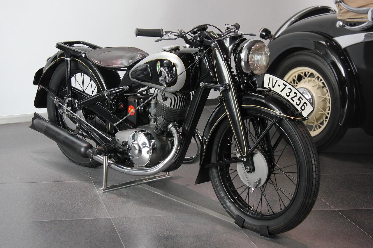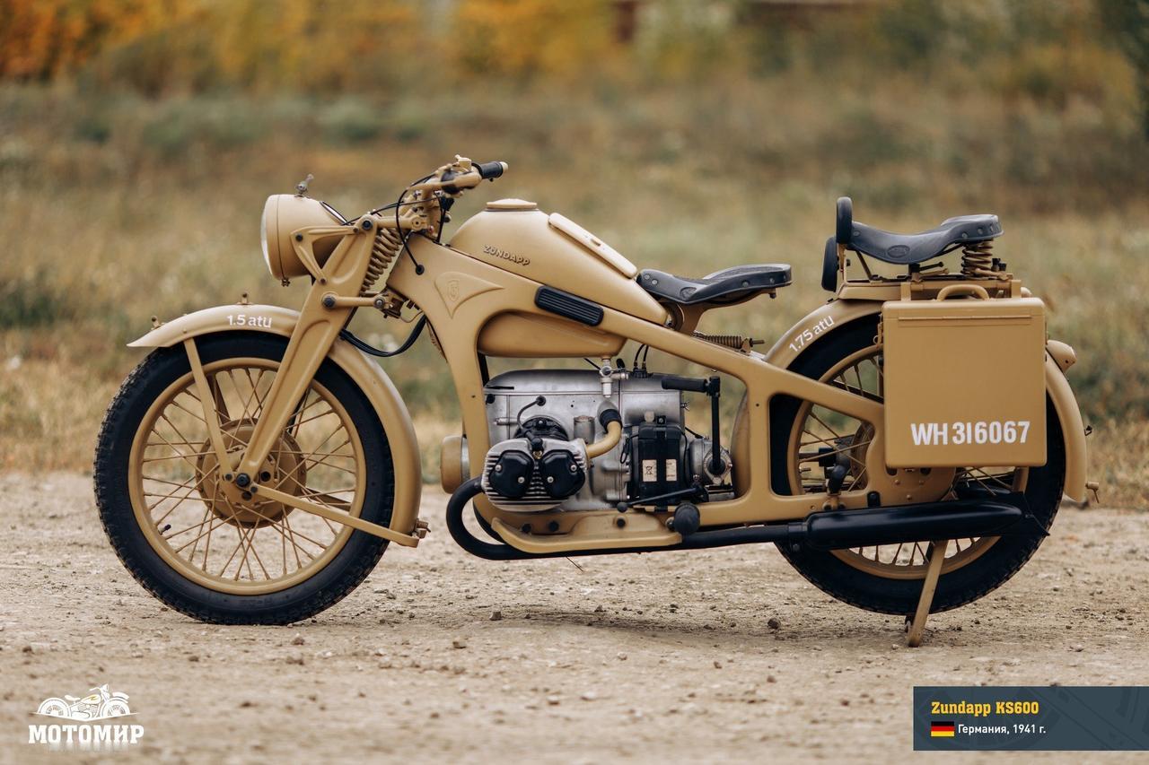 1941年,东线,列宁格勒州,索利齐市。苏军经过反击作战解放该城后,红军战士与当地居民围观被遗弃的德军摩托车。照片中的摩托车型号分别为DKW NZ 350与聪达普KS 500/600。 DKW NZ 350(参见图2)是德国生产的二冲程摩托车,配备11马力单缸发动机,最大载荷300公斤,是德军传令兵标配装备。 聪达普KS 500/600(参见图3)是巴伐利亚摩托车厂研制的重型军用摩托,采用16马力水平对置发动机,可选装边车与越野轮胎。