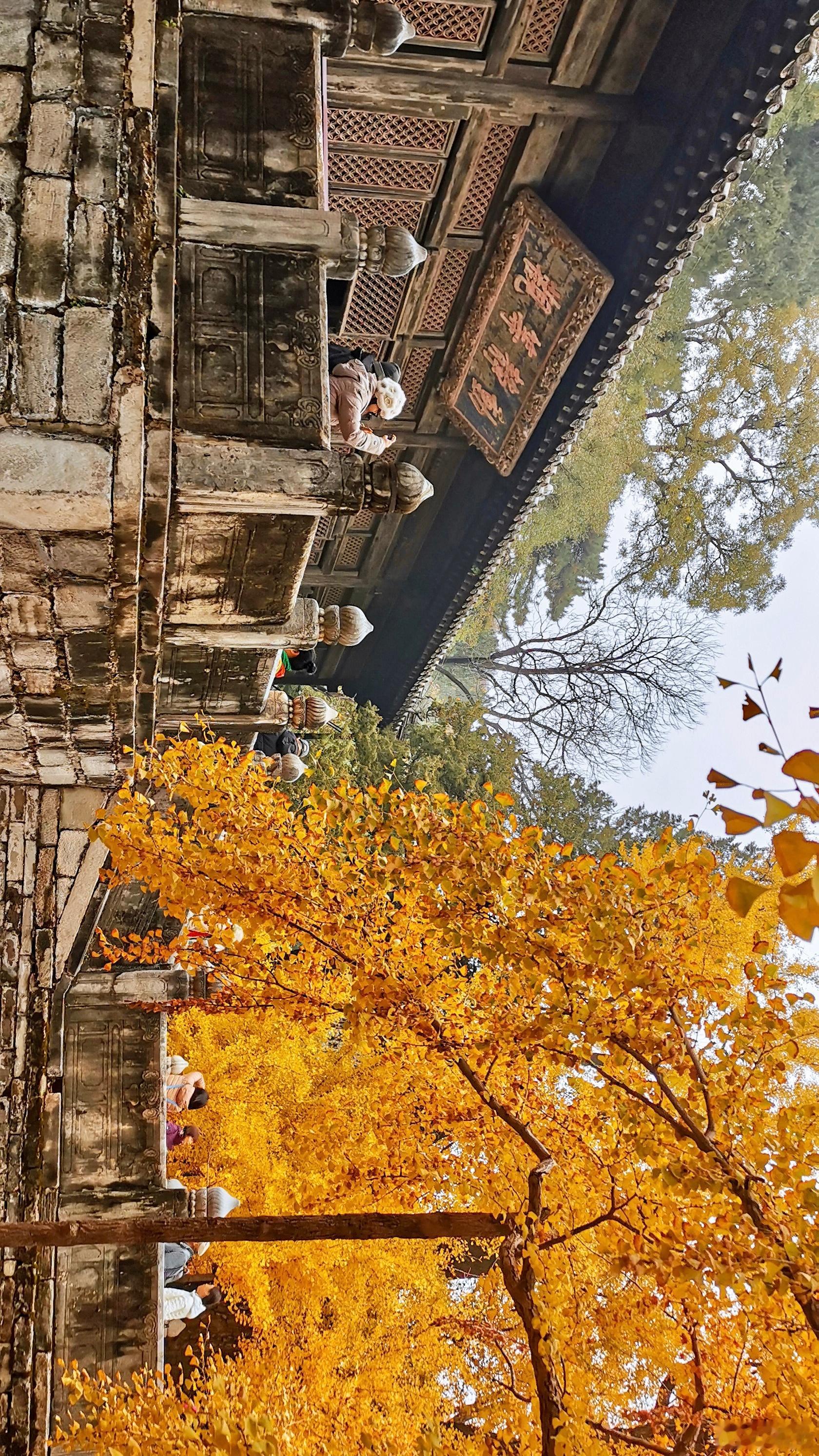 【雾中游北京大觉寺】秋雾锁禅林,银杏覆霜金。千年存古意,叶落静禅心。摄影