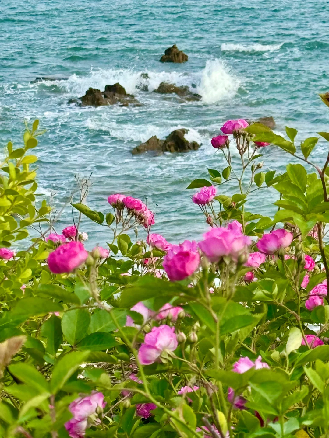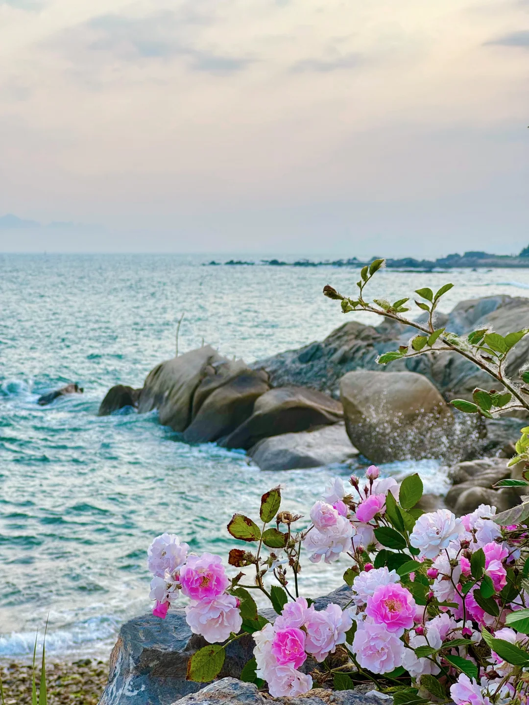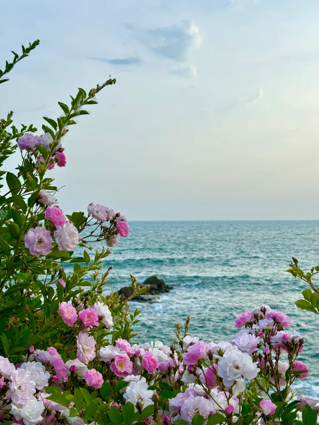 4️⃣大房子咖啡:从连三岛一直往前,到西环岛7号停车场,9号停车场有小粉花和通往大海的石子路,右侧有很多海边蔷薇花,这一路都超美