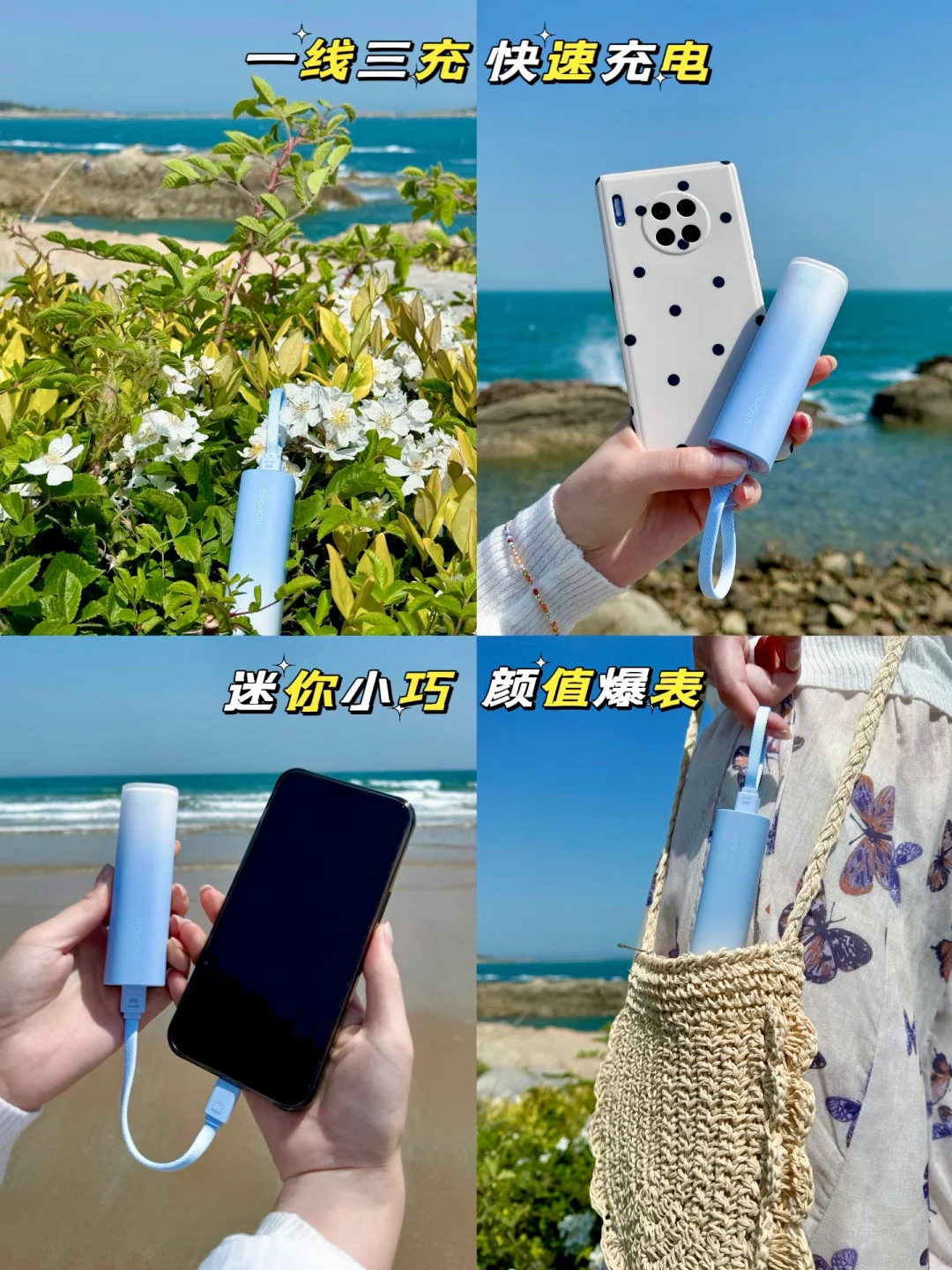 比粉底液还小巧,相当便携!磨砂手感,颜值杠杠滴,小清新渐变色,黄的、蓝的、绿的、粉的~一线三充,苹果安卓统统搞定,快速充电,够玩一整天!