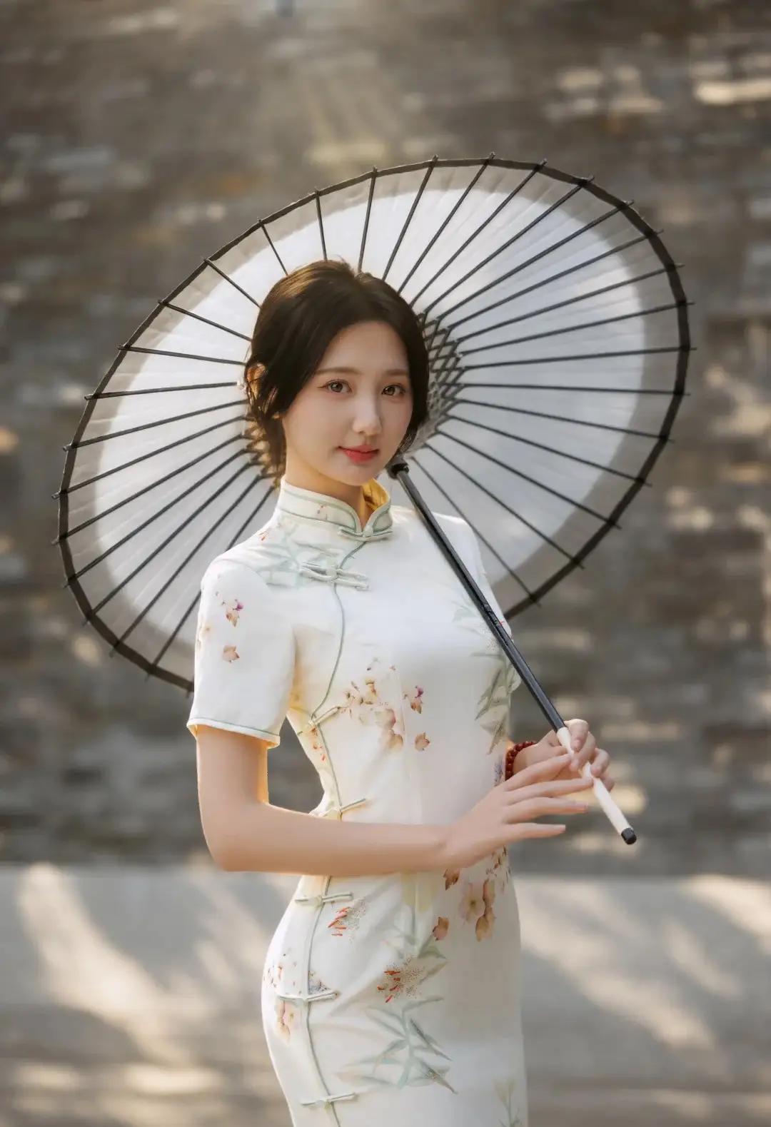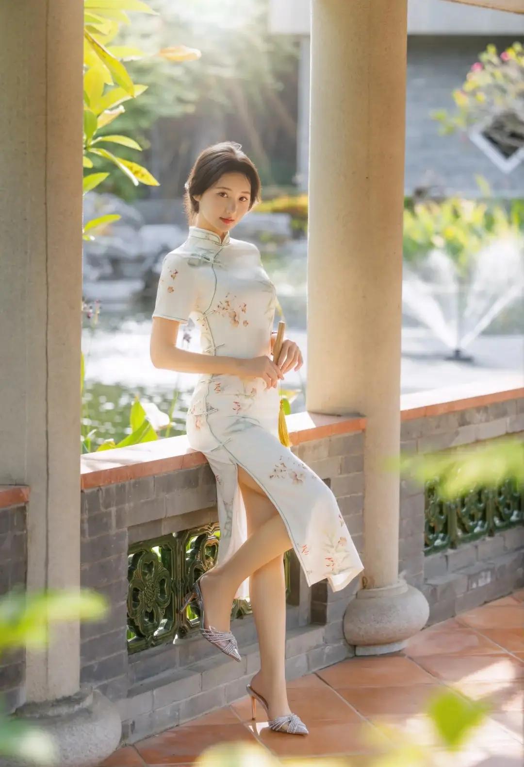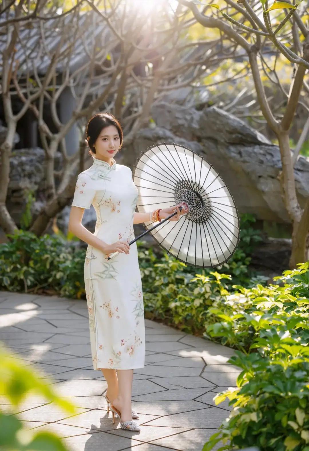 紫韵华章——旗袍里的东方美学 在光影交织的静谧空间里,她身着紫色旗袍,仿佛一幅流